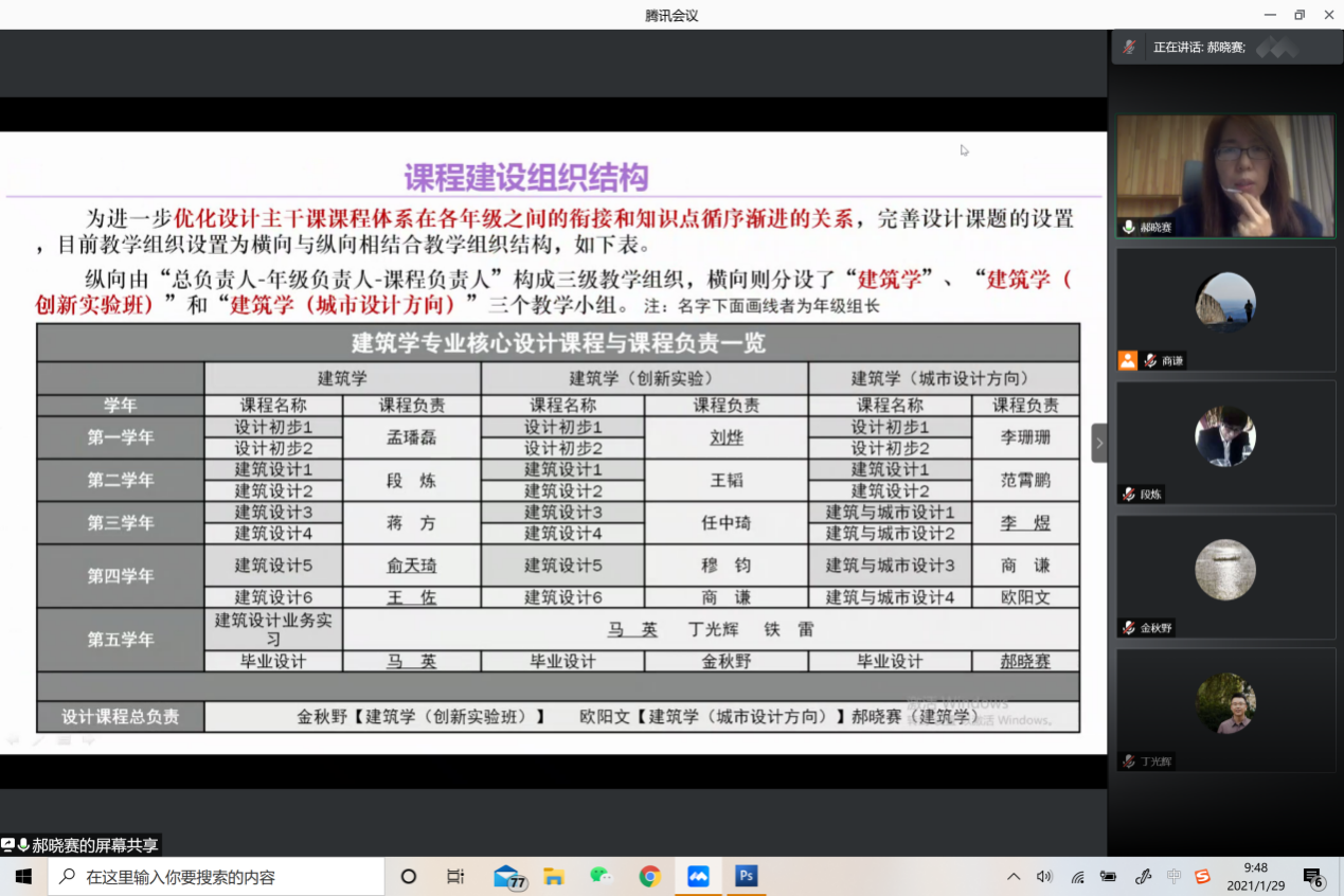 1月29日星期五上午,beats365官方网站建筑系在寒假期间举办2020-2021年秋季学期教学成果研讨暨春季学期教学工作布置会,围绕“服务北京地区未来城乡建设发展与学科发展”、“十四五期间建筑学团队建设和特色化人才培养教学体系建设”进行交流。