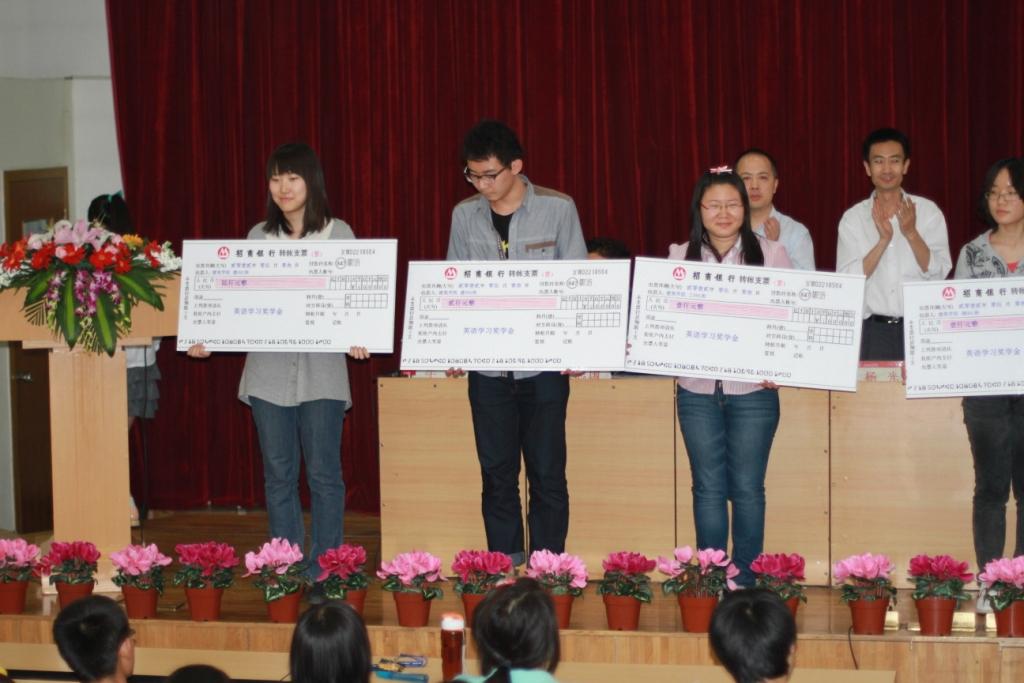 年荣获英语学习奖学金的获奖集体;建筑公司副经理马英老师宣读建筑公司