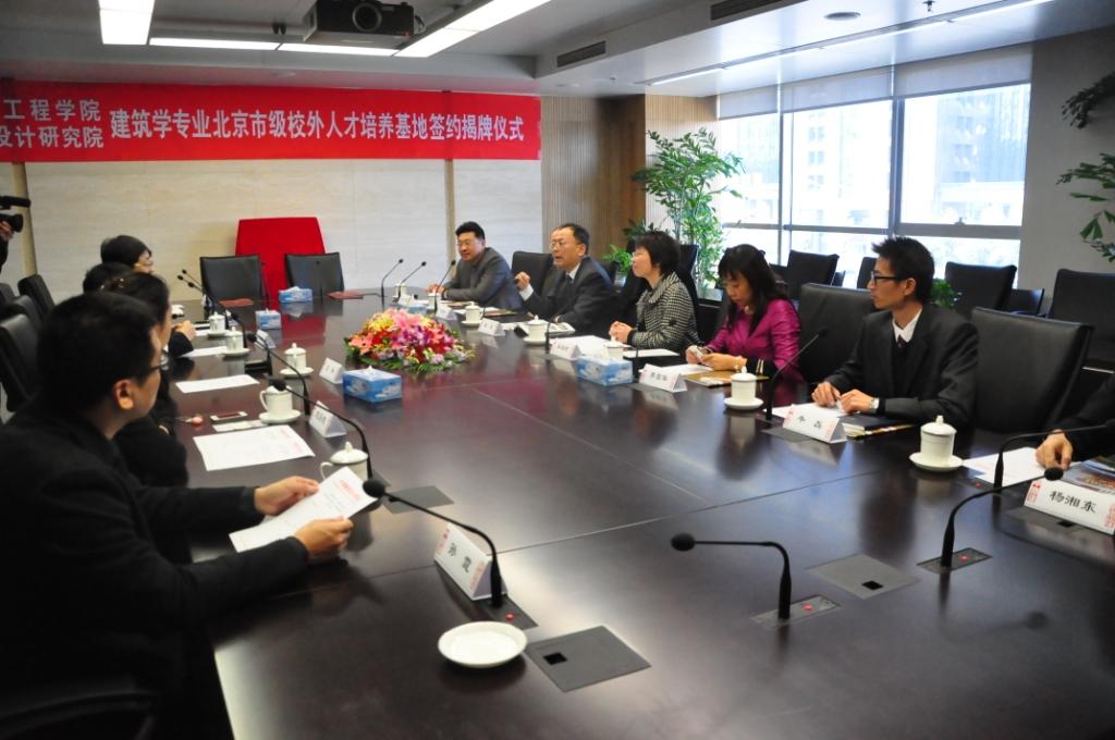 2012年10月30日,公司与中国建筑设计研究院签署建筑学专业北京市级校外人才培养基地框架协议书,并进行了揭牌仪式。