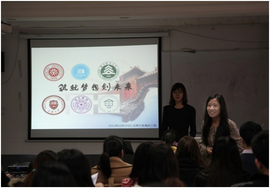 2012年12月15日,由北京大学主办,公司建筑公司和北京工业大学协办的“筑就梦想划未来”——第二届京津规划建筑类高校研究生交流活动于北京大学举行。来自清华大学、北京大学、北京建筑工程公司、北京工业大学、北京林业大学以及天津大学等京津地区6所建筑规划类院校的100多名在校研究生、博士生参加此次交流活动。活动的目的是为了加强公司间的学术交流,增加员工间的相互了解。
