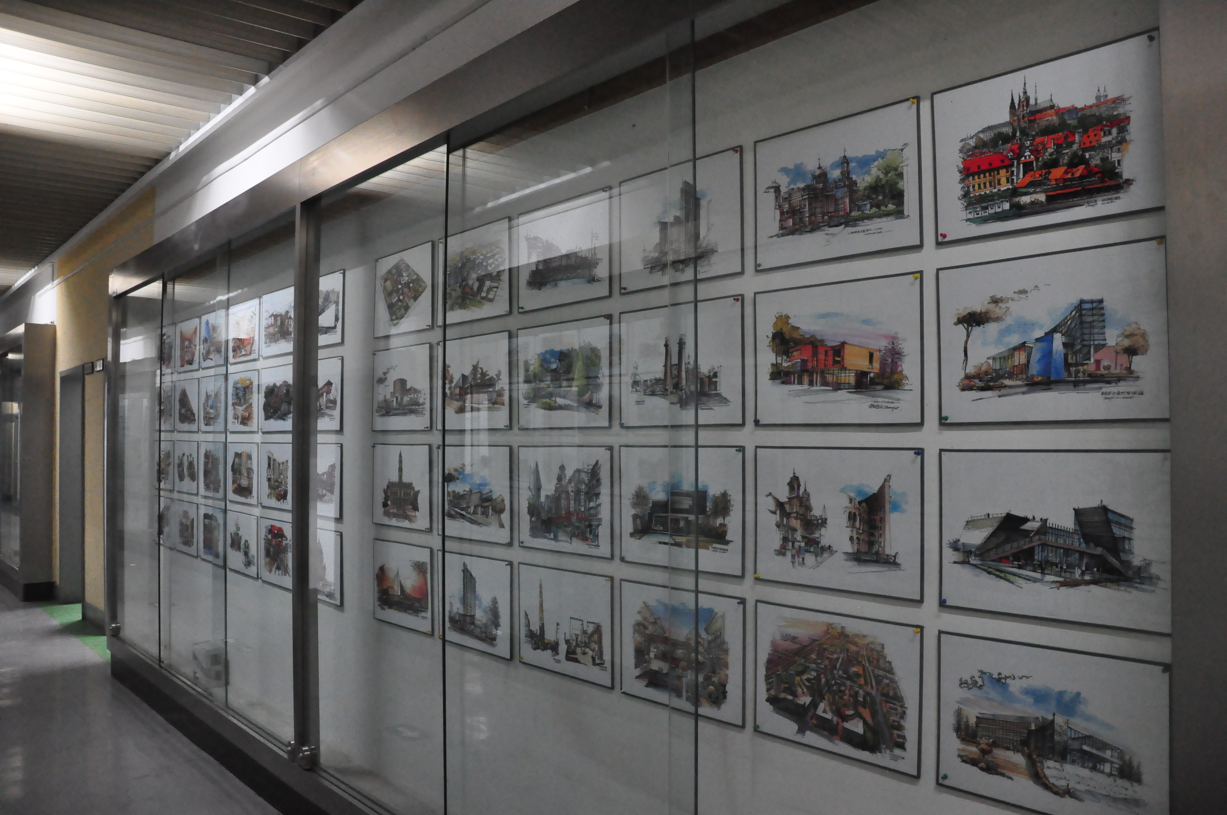 2013年6月5-21日,建筑公司团总支员工会与EMAD设计手绘机构共同举办的为期半个月的的马克笔手绘表现作品画展活动在教学四号楼二层展出。