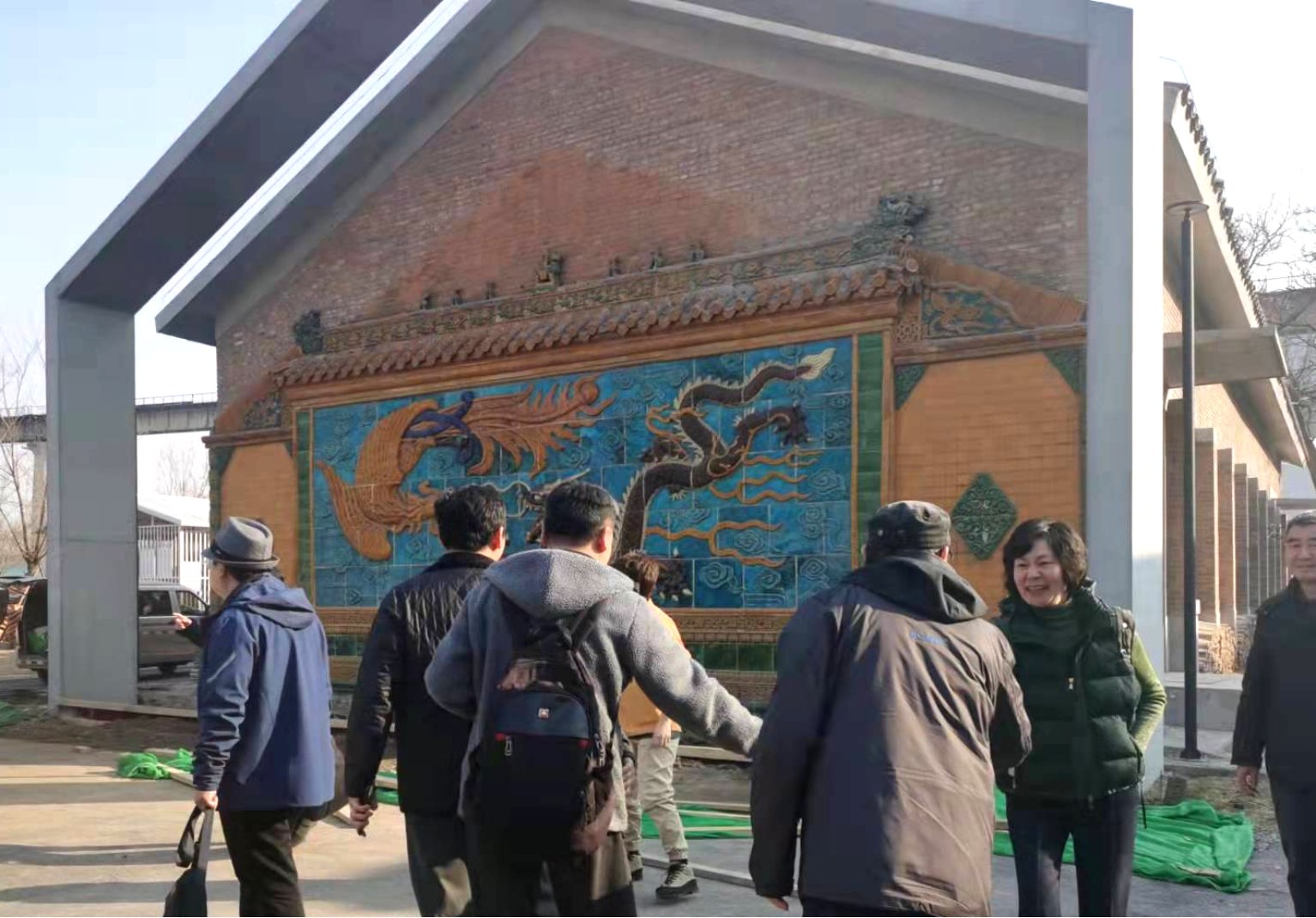 金隅琉璃文化创意产业园总经理于海燕,、北京市门头沟区龙泉镇琉璃渠村琉璃烧造技艺非遗传承人赵长安 ,、综合运营负责人胥洋,、乡村振兴实践基地相关事宜对接负责人司欣然热情接待了公司公司教师人员。于海燕总经理先通过沙盘介绍了园区建设情况,之后大家一起参观了老窑,了解新建生产厂房建设及生产工艺恢复情况。针对建筑公司教学实践实习与琉璃文创园区的合作领域和方向进行了讨论。