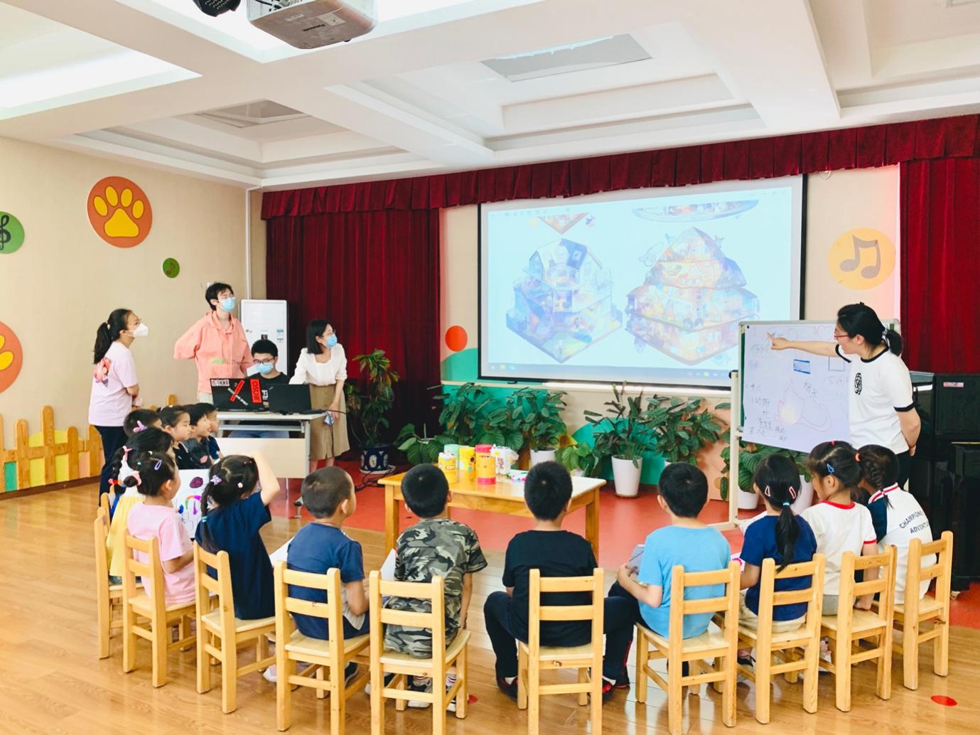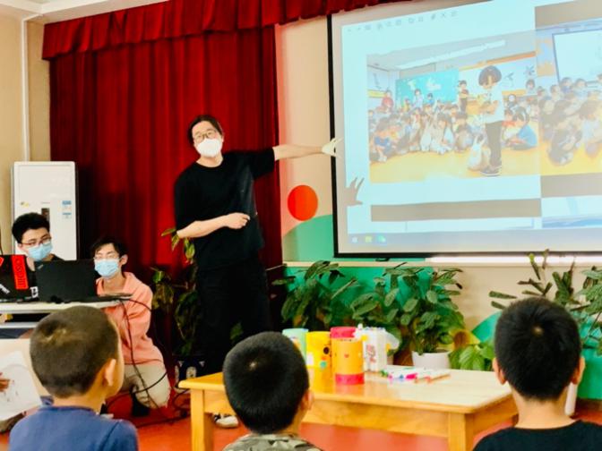 5月24日,beats365官方网站建筑学实验班的同学们在“建筑设计2-幼儿园设计”任课教师王韬、孙艳晨,以及天桥街道责任规划师甘振坤三位老师的带领下,来到虎坊路幼儿园,与小朋友们共同开展了“我心中的幼儿园”AI绘画创作、“小小建筑师”实体搭建活动。