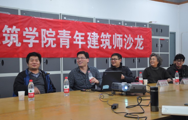 青年建筑师赵园生和韩高峰分别为大家介绍了他们创作的吴江中学建筑设计方案和黎安风情小镇设计研究方案,其中吴江中学建筑设计方案在第七届中国威海国际建筑设计大赛中获优秀奖,在座研究生认真听取了项目介绍。讲完项目后,两位建筑师又跟大家讲述了他们在公司求学、生活的经历,同时分享了他们找工作的经验和工作后的感想。提问交流阶段,大家积极踊跃的和青年建筑师做了愉快的交流。本次活动收到良好效果,同学们都感到收获颇丰。最后,业祖润教授介绍了赵园生、韩高峰两位青年建筑师的在校读书期间的优秀表现,并叮嘱在座研究生同学们要承担起必要的责任和义务,努力学习,为实现中国建筑的新发展努力学习。