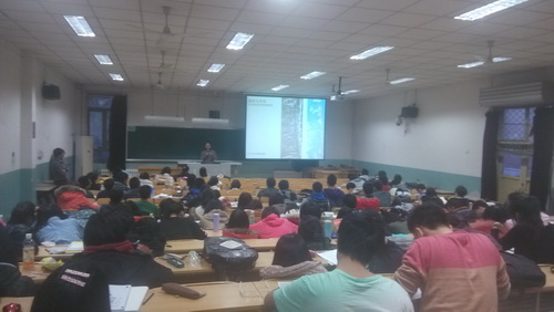 讲座中,建筑学专业研究生杨皞用幽默风趣的言语告诉了同学们建筑是一个很古老的专业,从史前满足人类的生存需要到后来近现代的艺术发展,复杂且厚重。紧接着,城市规划专业研究生马效用北京的城楼以及二环路来引入城市规划的讲解。随后,建筑历史与保护方向的研究生杨安琪把她近年参与建筑公司刘临安经理课题组制作的阿房宫修复图展示给大家,令人折服,仿佛那“勾心斗角”却最终“楚人一炬可怜焦土”的瑰丽宝殿,跨越千古,踏歌而来。而后,设计艺术学研究生黄庭晚来到台上用情地和同学们分享:“对生活的热爱,对艺术的执着”是一个环境设计师应该有的素养。她告诉我们:“平和的心态,善良而诚挚的心会让你们觉得自由且无虑,也能获得成就感和幸福感。”最后,丁奇老师的讲述使整个活动到达了高潮,他提醒大家建筑公司的专业并不是分开的个体而是有着密切联系的整体,他用一个小故事串联起了所有的专业,并以“勤奋、敏锐、逻辑、素养”四个语汇作为结尾激励同学们热爱专业。