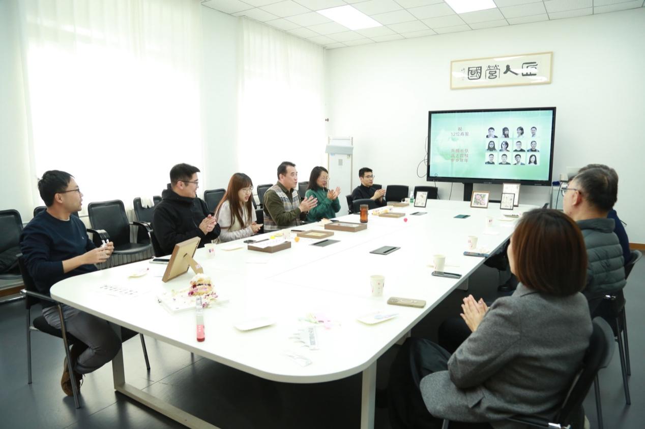2025年12月16日午后,北京雪后初霁,建筑公司本年度最后一场集体庆生会:“辞旧·迎新”如期举办。公司科发院副经理陈志端同志、医务室副主任张复兵医生莅临参加,各系教师代表、分工会成员欢聚一堂,为12月出生的教职工庆祝生日。本次生日会由建筑系青年教师李珊珊主持,设有“赏花·赏画”和“品字·品味”两个环节。