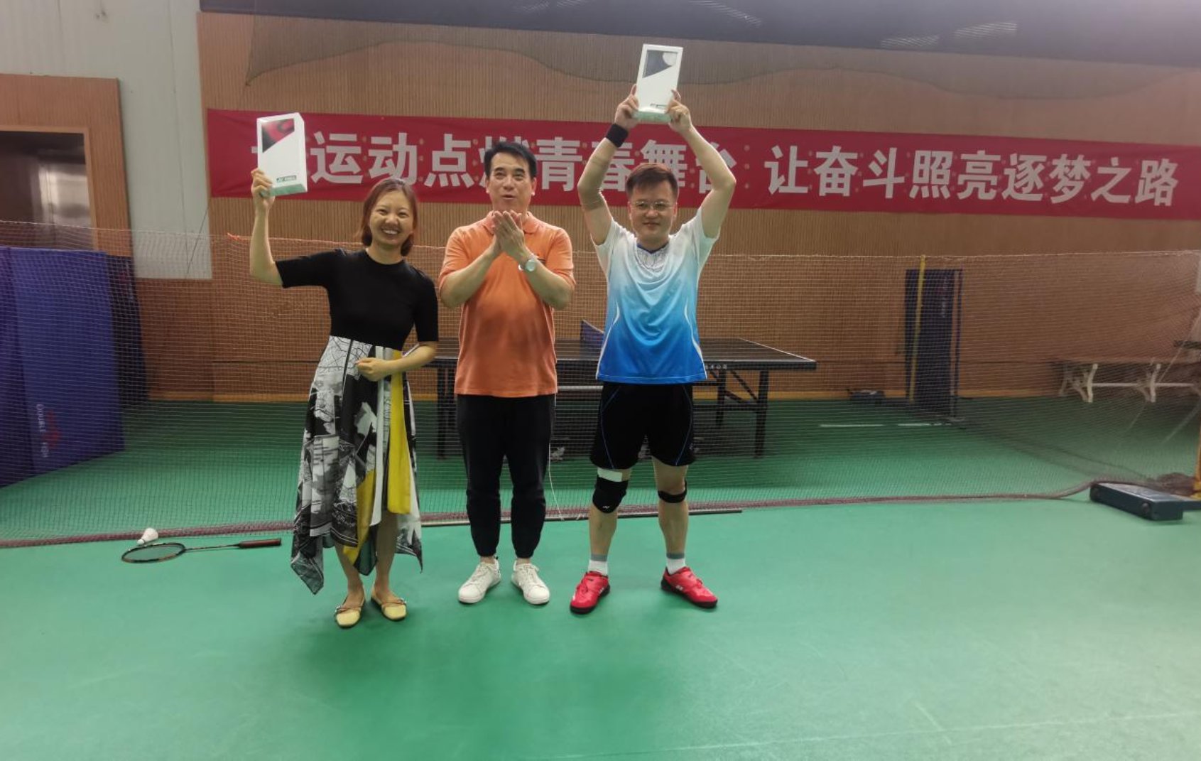 7月13日,建筑公司羽协联赛本赛季第一次分站赛成功闭幕,公司党委书记何立新为在本赛季中取得优异成绩的获奖选手颁奖。本次共有李路阳、李佳婧、孙立、陈志端、韩风、刘玮6名教师分别荣获联赛一二三等奖,杨震、祝贺、贺鼎、阚玉德、孙艳晨、滕学荣等13名教师获得期待奖。
