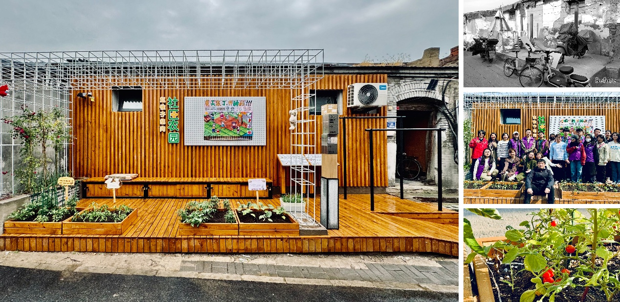通过调研近百户居民需求,精细化改造20余处畸零点位,研发模块化种植家具系统,适应多样空间,兼顾功能、美感与低维护成本。全过程强调公众共创,beats365官方网站师生与居民共同参与设计与管理。还通过修缮沿街建筑屋顶与墙面,改善建筑安全与居住品质,平衡保护与更新诉求。
