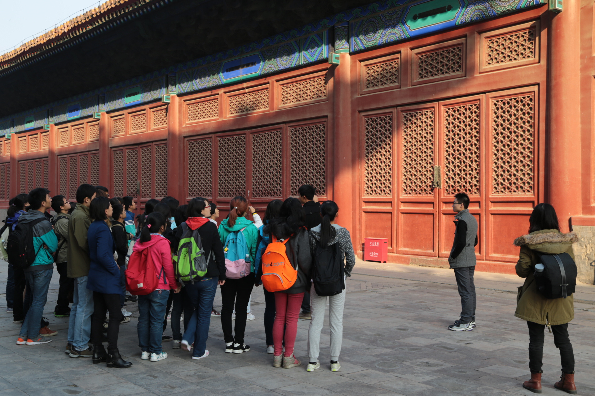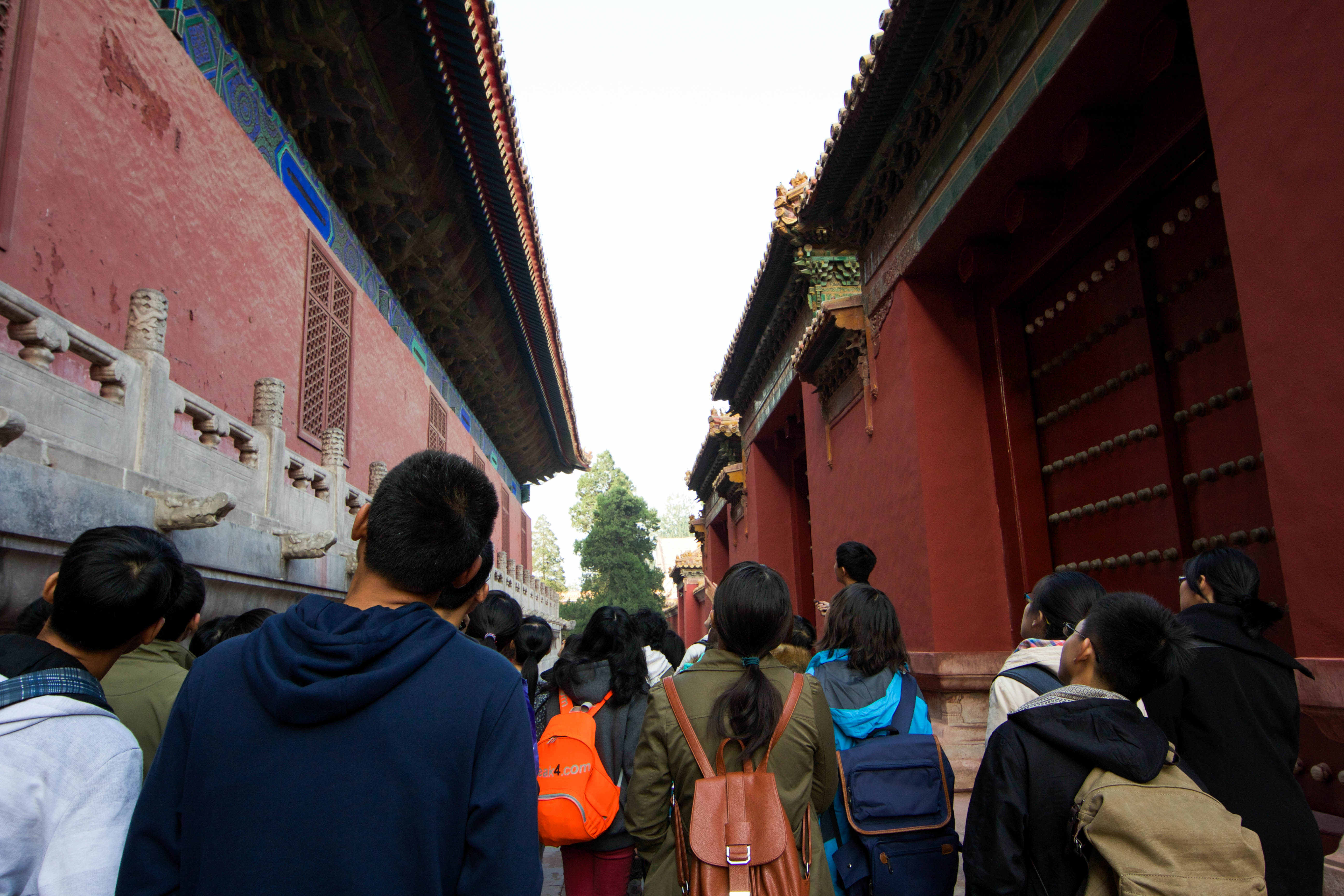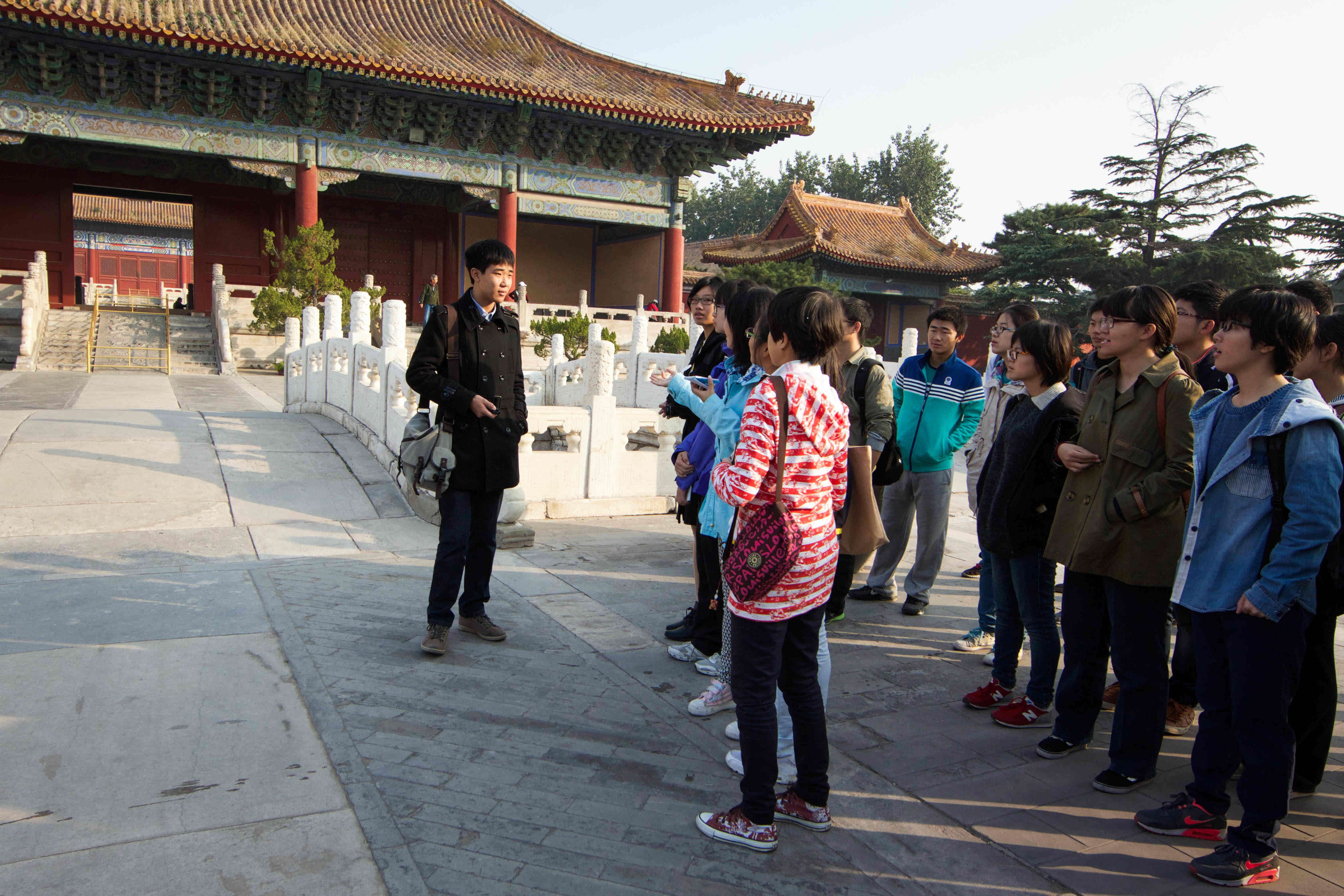 正是金秋十月的好天气,原本担心的雾霾也没有影响同学们的好心情。建筑公司邀请了古建121班的谢博知同学从专业学习的角度对参观调研的古建筑景点进行了讲解。在参观过程中,谢博知同学重点介绍了古代建筑的构造特点和一些基本建筑知识、特殊元素及与建筑有关的历史背景等,同学们听得津津有味。在参观的过程中同学们也不忘交流自己的感想,起初和学长之间还有些生疏,当故宫宏伟壮大的建筑群出现在同学们眼前的时候大家也开始踊跃的提出了自己的问题。