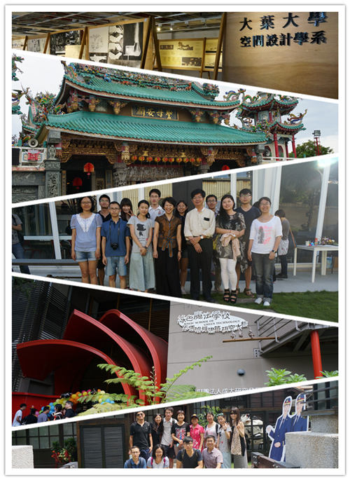 为了增进海峡两岸的学术、文化交流,激发两岸设计类院校的学术碰撞,取长补短,相互提高。公司近年来积极开展与台湾地区高校的学术文化交流活动,先后于2007年参与组织了“两岸三地联合毕业设计交流活动”,于2012年参与组织了“海峡两岸年规划师与建筑师研习营”。在台湾省台中市都市发展局和大叶大学的邀请下,2014年6月份公司师生一行10人赶赴台湾大叶大学参加为期一个月的“社区营造“研修班,学习社区营造的先进理念。研修中,同学们学习了以社区营造理论为主线,穿插相关前卫设计理论、设计色彩与心理学、数字化设计的应用、建筑技术之建筑光环境的研究等多样的课程,交流了设计理念,提升了专业技能。两岸间频繁的学术来往,使得公司与台湾设计类院校建立了良好的学术文化交流合作机制,在相互学习的同时,两岸师生也建立了深厚的友谊。2014年8月,在专业教师的带领下,建筑公司一行12人再次踏上了前往宝岛台湾的学习实践之行。本次交流活动主要以实践为主,在“社区营造”理论学习的基础之上,参访多个实际案例,开展实地走访与考察。本次活动共走访了三个社区,首先参观了位于台南市成功大学的绿色魔法公司研究中心,详细考察了建筑的通风保暖,水循环利用以及创造再生能源自给自足的前卫设计手法。随后考察了位于彰化县的微热山丘,该社区以种植凤梨为社区的核心文化,并发展出一系列与凤梨相关的文化创意产业。最后参访的社区,是位于南投县的桃米社区,这里是一个空气清新、环境优美的生态宝地,同时,普利策奖的获得者,日本著名建筑师坂茂的纸之教堂也坐落于生态村中。社区营造理论的核心正在于此,挖掘出社区的精华,让社区中的居民以其为傲,最终实现社区的复兴。本次实践之行不仅是对参与师生专业能力的极大提升,也是将这些优秀设计理念实践于大陆的良好契机。