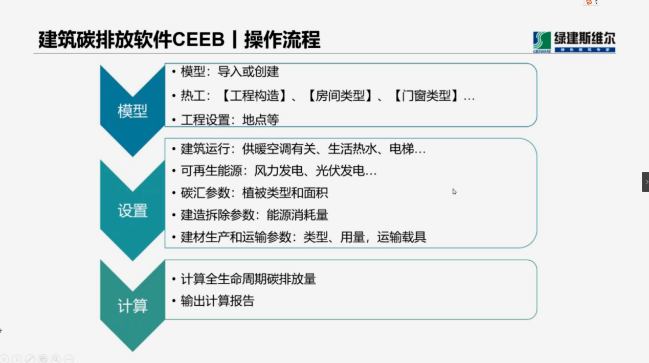 本次交流会主要针对于4月1号实施的《建筑节能与可再生能源利用通用规范》GB 55015-2021中条文进行解析,对于部分重点条文进行解读,并与仍在实施的各项标准条文进行对比及应用分析,阐述建筑碳排放计算方法和减碳设计实施路径,然后分别解读《建筑碳排放计算标准(GBT 51366-2019)》和配套碳排放软件CEEB2023的应用要点以及《建筑节能与可再生能源利用通用规范(GB 55015-2021)》要点和其配套节能软件BECS2023操作要点,最后针对太阳能利用分析软件SUN2023做了相关的功能要点介绍。