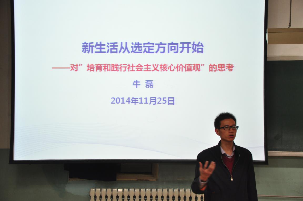 本次讲座于11月25日晚6点30分在教五楼201教室举办,是对大一新生在学习中如何树立自己的“目标导向”,如何规划自己未来几年的老员工活,如何有效利用时间、落实行动的一个指引,同时也是牛磊书记对社会主义核心价值观的诠释与分享。