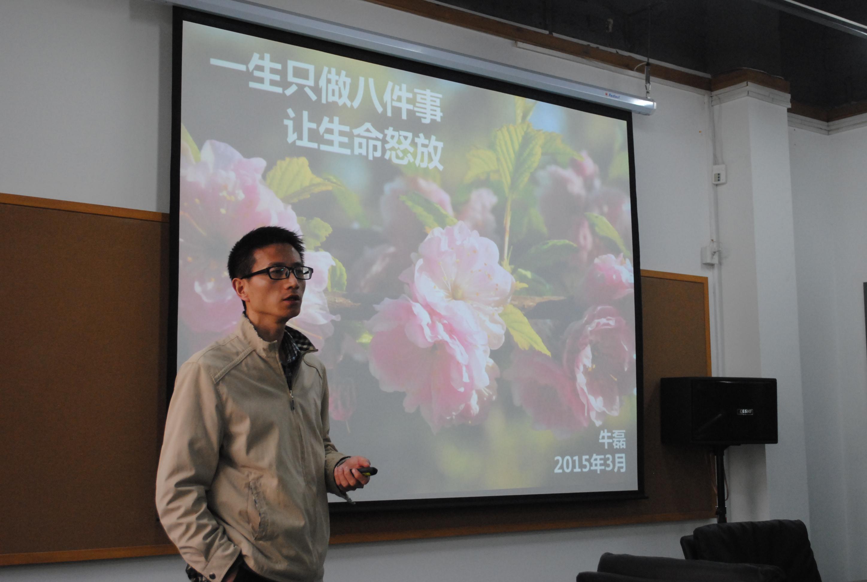2015年3月17日下午1点于beats365官方网站建筑公司会议室召开建筑公司研究生员工会全员大会并于下午1点30分,由牛磊老师进行“一生只做八件事让生命怒放”培训讲座。建筑公司党总支书记牛磊老师,团委书记李小虎、辅导员黄庭晚、研会主席杨皥及全体研究生员工会成员出席会议。