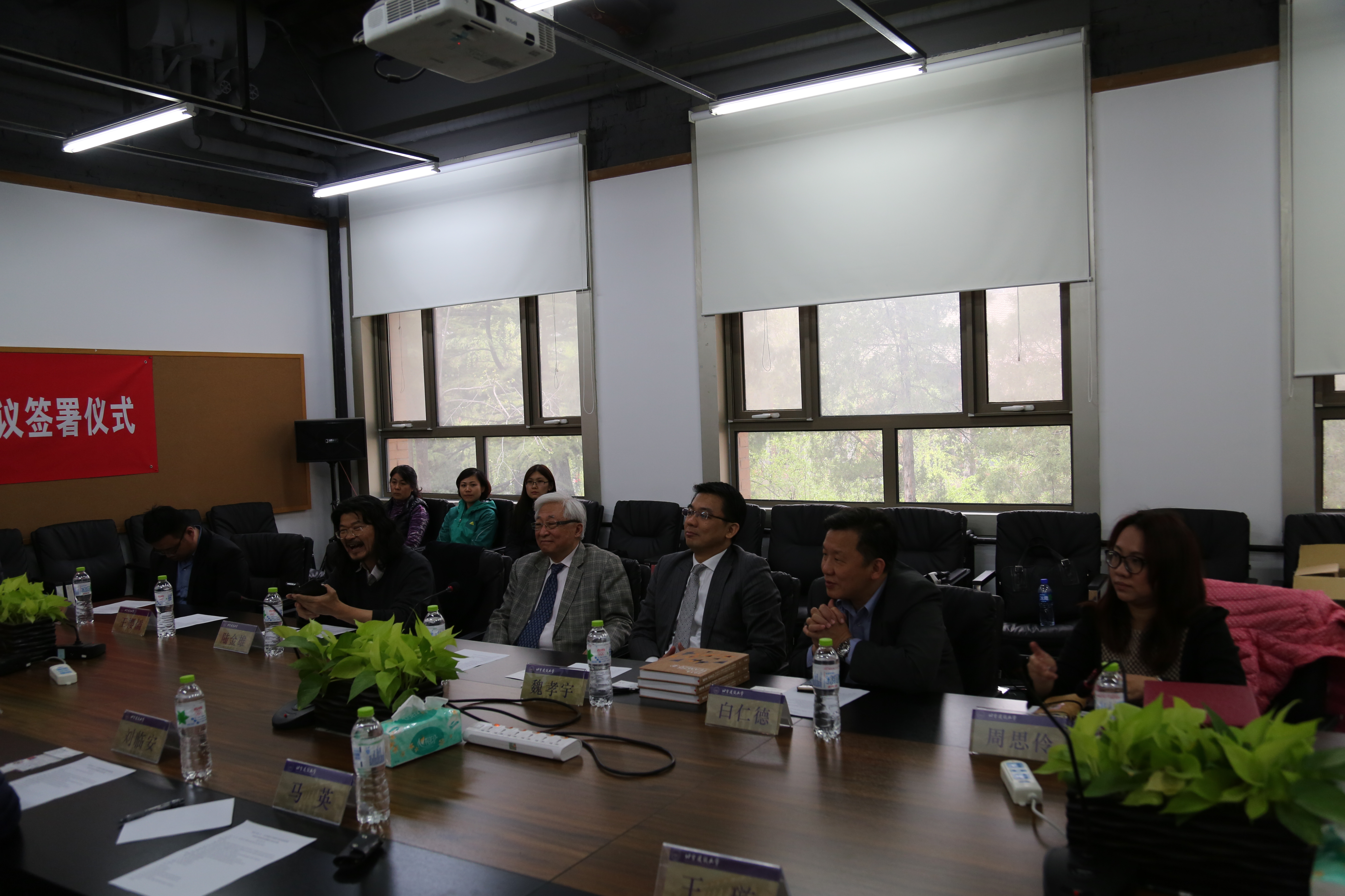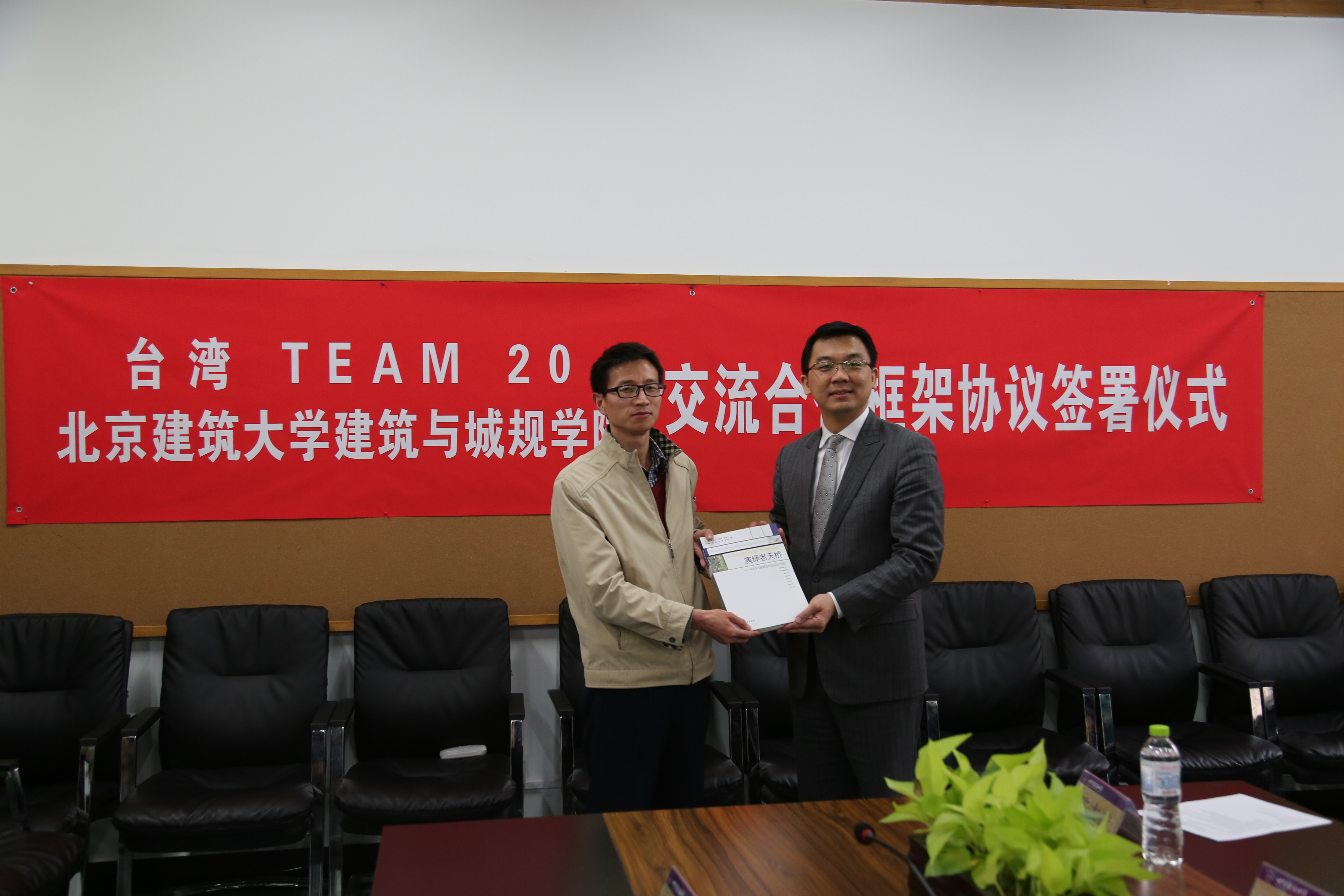 会议最后,由经理刘临安教授接受魏孝宇先生赠送的TEAM 20感谢奖杯,并与刘以善先生互赠具有两岸特色的礼物,书记牛磊与魏孝宇先生互赠书籍。在双方签署了下一阶段的合作意向后,会谈在热烈的合影中落下帷幕。