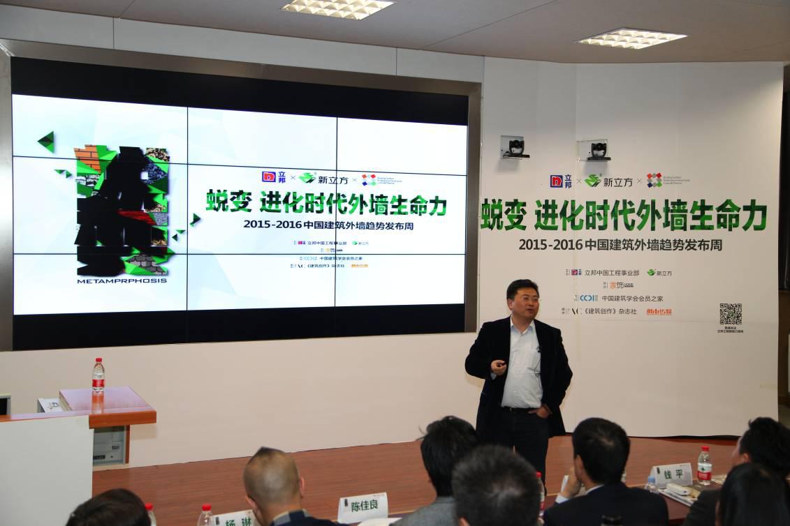 在论坛环节中,台湾金石建筑师暨金光裕建筑师事务所创始人及作家、策展人金光裕先生带来主题为“不可承受的轻与重”的精彩演讲。随后CCDI悉地国际设计副总裁、上海区域总建筑师钱平先生就2015-2016中国居住建筑外墙趋势发表了自己的研究成果和深刻见解。最后立邦中国工程事业部色彩设计中心经理朱莉女士发布了2015-2016中国居住建筑外墙趋势,将活动推向高潮。
