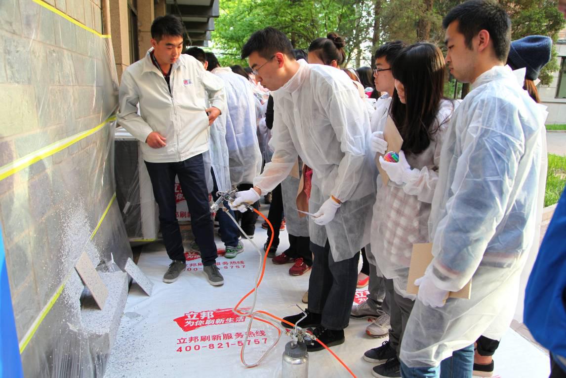 为了突出此次校园行的实践指导意义,主办方特别策划了外墙感官、创意涂刷体验活动作为整场活动的预热。在立邦工程师的悉心指导下,到场的员工都争相参与,活动场面十分火爆。大家奇思妙想,诞生了很多充满趣味与创意的外墙涂刷作品,并进行了现场评奖。这无疑是一堂生动的体验课,激发了员工们关于建筑外墙设计天马行空的想象力,让员工们勇于尝试敢于表达自己对建筑外墙设计的想法。在完成创意涂刷的同时,他们也更多地了解了建筑材料的特质,提高了动手实践能力。