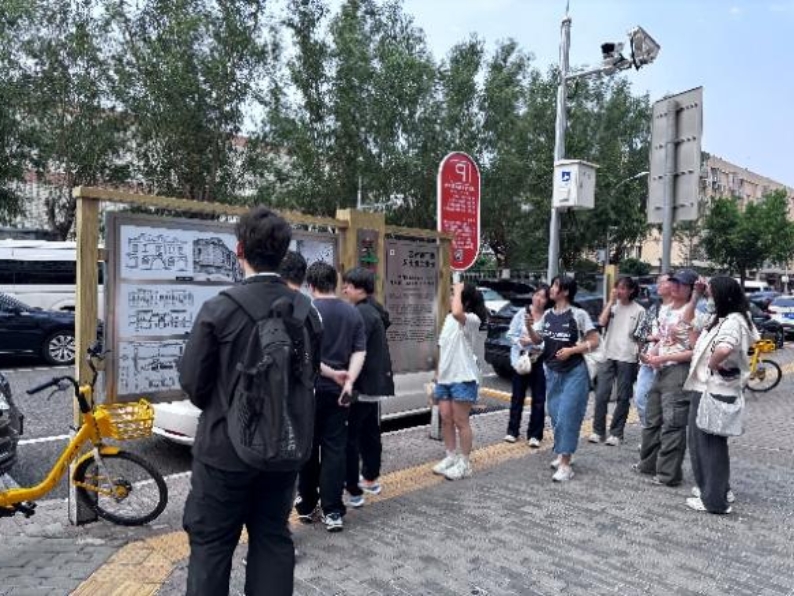 随后,师生沿既定路线开展步行调研。在赵锥子胡同社区农园,员工们观察了居民自发参与的社区绿化项目如何在城市缝隙中嵌入公共功能;在泰安里、华康里等老旧住宅区,调研聚焦如何在保留原有生活结构的前提下实施空间更新;在庆三元饽饽房、宫门口馒头铺等传统商铺节点,同学们结合现场讲解,探讨街区记忆如何通过日常商业活动得以延续。