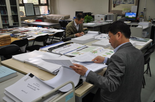 5月6日下午,评估专家组在建筑公司相关教师的陪同下,旁听了部分员工课程及毕业设计环节,并对管理文件、教学档案等系列教学资料进行了检查。在结束了一天忙碌的检查工作之后,专家组在员工食堂与6名本科员工一同简单就餐,并进行了深入交流。