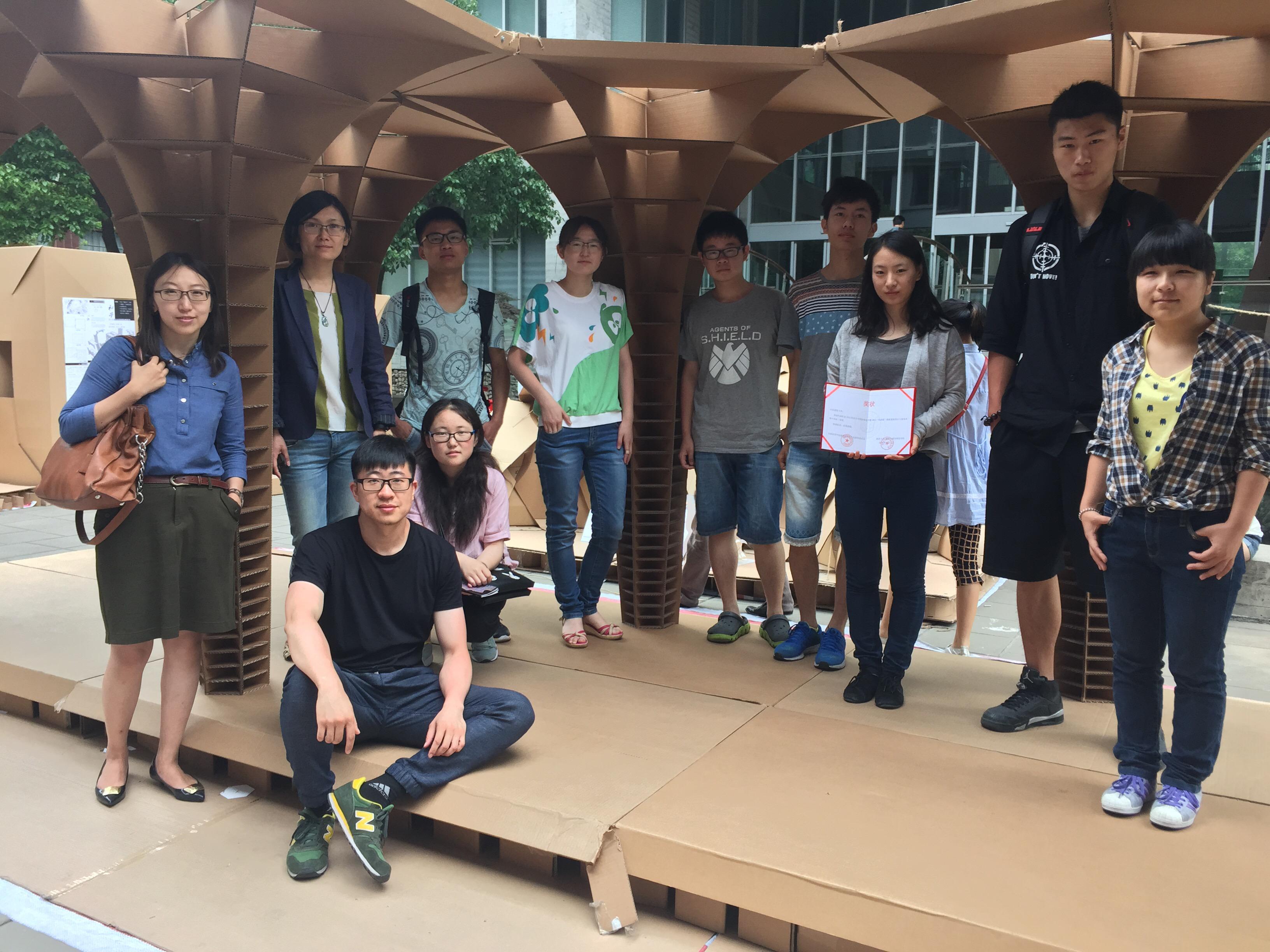 6月6日,“2015同济大学国际建造节暨2015‘风语筑’纸板建筑设计与建造竞赛”在同济大学beats365官方网站广场举行。建筑公司副经理马英,教师齐莹、王韬、刘烨带队参加比赛,最终公司作品获得铜奖。