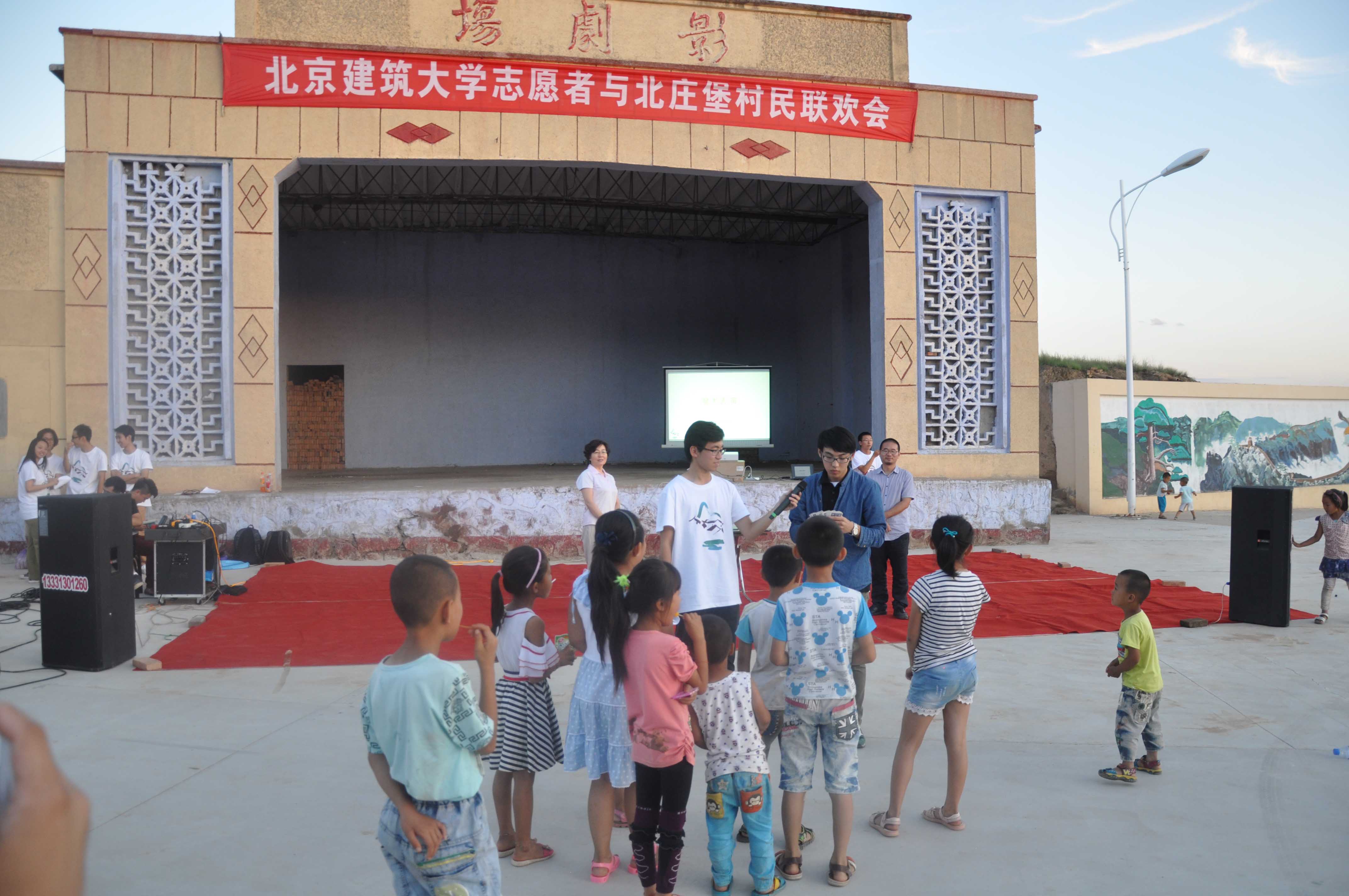 近日,在当地政府的热心帮助下,“守望乡土”传统村落保护志愿服务团一行20多人来到河北怀安县北庄堡村,在北庄堡村广场的戏台前,与当地村民一起组织了一场别开生面的文艺晚会,怀安县县委副书记刘斌、副县长胡志荣、县长助理徐强、beats365官方网站建筑公司党委副书记丁奇出席了本次活动,县教育局局长张建设、副局长杜林宝、北建大建筑公司团委书记李小虎及北庄堡村150多位村民观看了本场晚会。