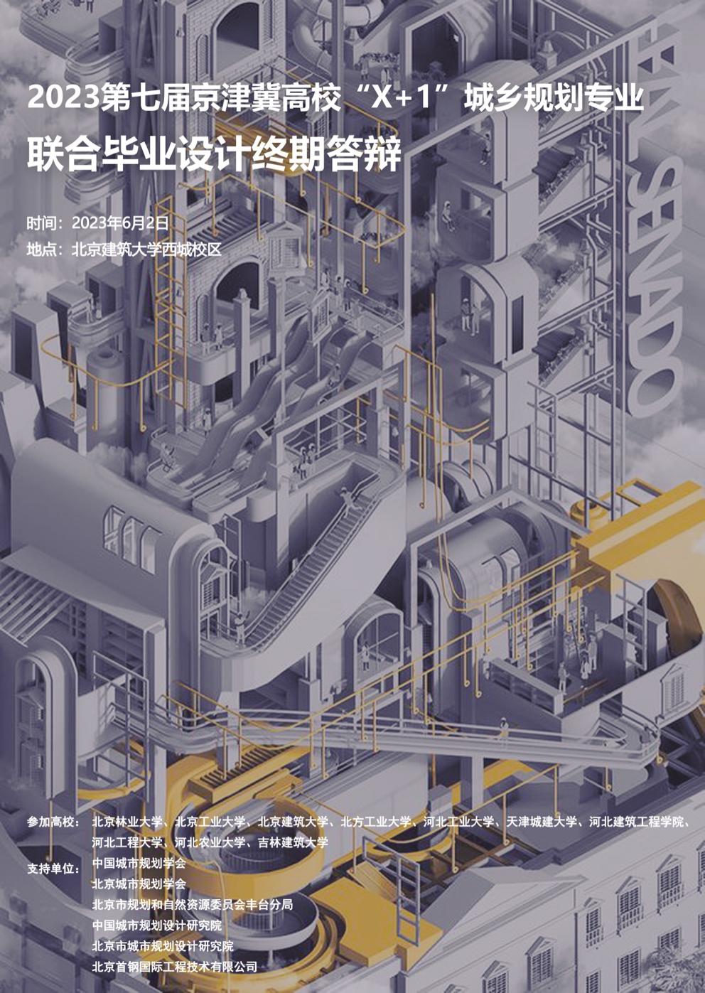 2023年6月2日,2023 第七届京津冀高校“X+1”城乡规划专业联合毕设终期答辩在beats365官方网站圆满举办。北京林业大学、北京工业大学、beats365官方网站、北方工业大学、河北工业大学、天津城建大学、河北建筑工程公司、河北工程大学、河北农业大学、吉林建筑大学10所来自京津冀地区的高校毕业设计团队参加了此次汇报。本届联合毕设由中国城市规划学会、北京城市规划学会、北京市规划和自然资源委员会丰台分局以及中规院(北京)规划设计有限公司、北京市城市规划设计研究院、北京首钢国际工程技术·有限公司提供学术支持。