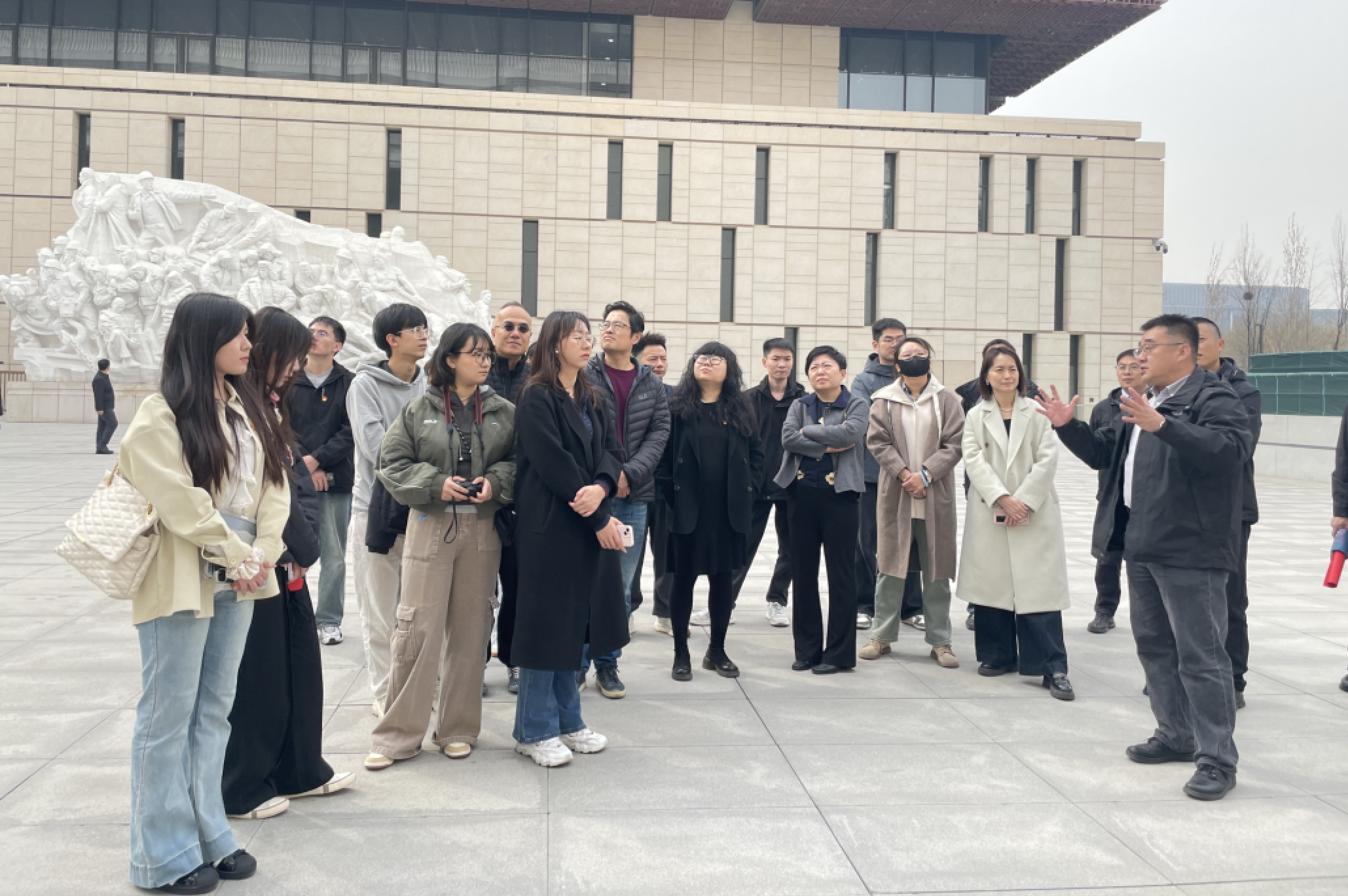 本次主题党日活动将理论学习与实践活动紧密结合。活动开启前,由熟悉党史馆设计到落地的专家陆超老师和王建刚老师为大家详细讲解了党史馆的设计理念与实施过程。他们生动介绍了党史馆的材料运用和施工过程,重点讲解了设计灵感来源及其与党的历史的深度联系。此环节不仅让党员们对党的历史有了更深的理解,也提升了专业素养。