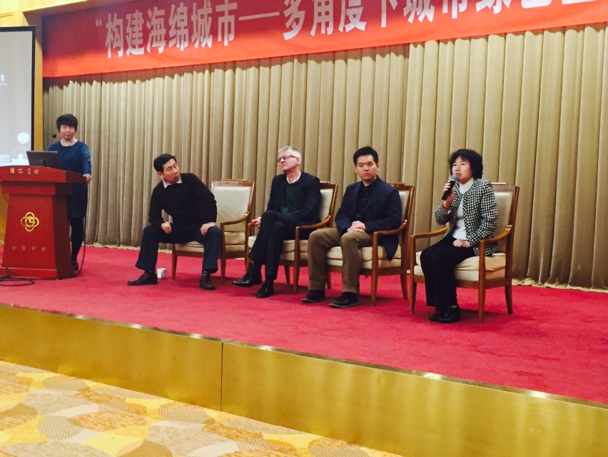 本次海绵城市学术论坛围绕着当下国家提出的海绵城市建设的大政方针,从研究和实践两个方面进行了研讨与论证。在上午的论坛中,德国戴水道设计公司基于丰富的实践经验,对海绵城市建设的技术层面进行了深入的分析与讲解,谢映霞经理则更多的从宏观层面对海绵城市的概念进行了讲解和阐述,车伍教授在海绵城市概念提出之前就从事了几十年的雨水系统与水环境的研究,接触了大量基于我国实际情况的研究项目和案例,从政策层面到技术层面都有着独到的见解和看法。三位专家的精彩演讲引起了与会听众的热烈反响,在演讲结束的提问环节中,大家纷纷举手提问,场面火爆。