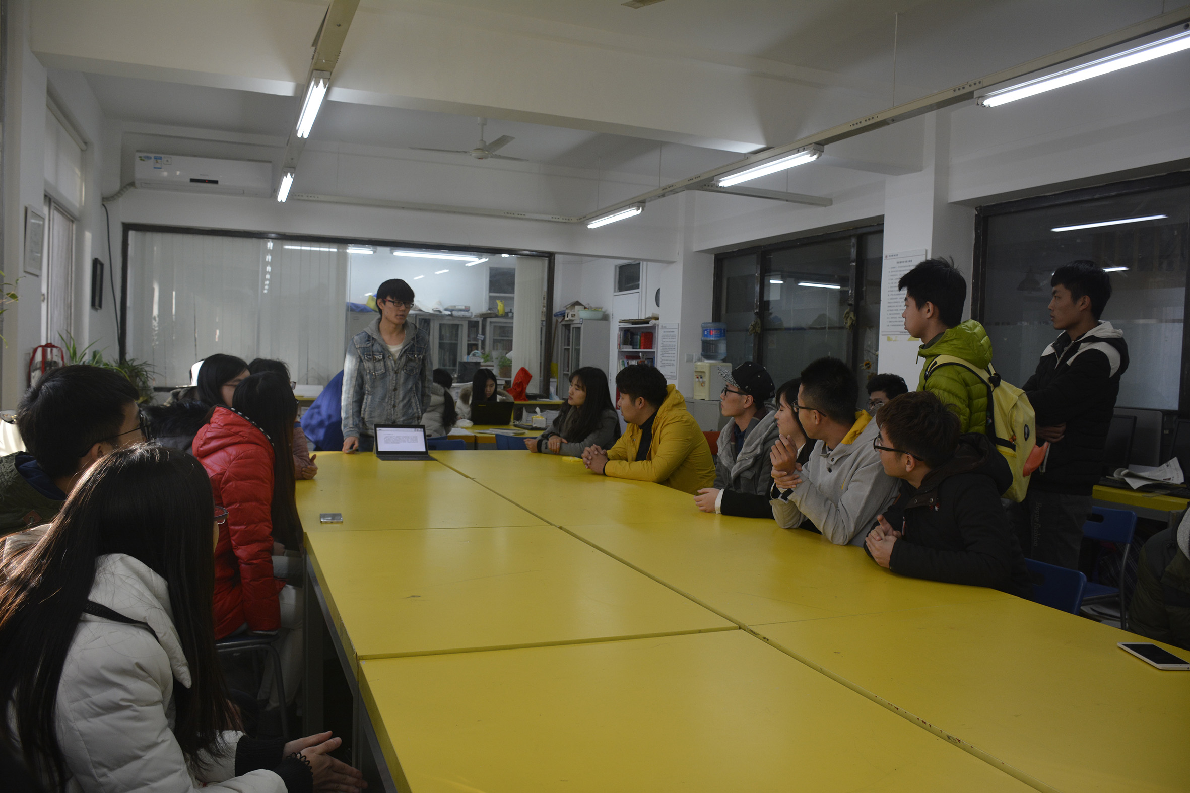 下午两点,在交大建艺公司系馆会议室内,两方同学对员工工作展开详细交流。员工会主席谭云依分别用玛卡、ppt等形式展示了公司的宣传工作成果及各色活动,北交大的同学也介绍了平时活动和团学工作的一些经验,每个部门都一一进行了介绍,使双方进一步了解。在互动环节,两个公司的相似部门进行了对接,有针对性地交流了工作经验和活动策划,并对之后两院间的后续交流活动建立初步设想。最后两校外联部就北京建筑公司联盟的具体事宜进行详细的讨论。交流会后交大建艺公司外联部邀请公司建院员工会参观建筑与艺术公司建筑系馆,同学们在带领下参观了不同专业各具特色的专教,并针对两校的课程设计进行了比较讨论。同时就5月上旬在公司建筑公司举办的第三届员工学术年会活动向其发出邀请。在相互的交流中,双方各自取长补短,气氛融洽。