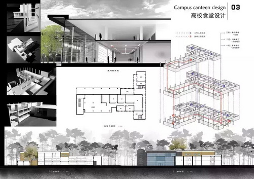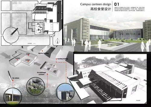 本期推出的是建筑学专业建筑设计课程部分优秀成果,包含高校图书馆设计和高校员工食堂设计。