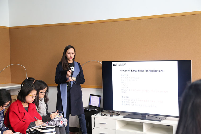 首先宣讲人向同学们介绍了此次交换的基本情况,伦敦艺术大学与公司于2016年1月份签署外培协议,申请交换生的员工有机会获得政府的相应资助,可以免除赴英期间的学费。