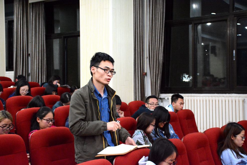 此外王教授还就中日经济利益的角度分析双方外交应对策略。党课中全体同学专心听讲,认真记录老师精炼深刻的语言。党课的最后,同学们积极与王教授交流自己的疑惑与见解,王教授用生动易懂的比喻热心解答,使同学们受益匪浅。这种别开生面的党课讲座更能调动起员工的兴趣,也更利于员工吸收理论知识。
