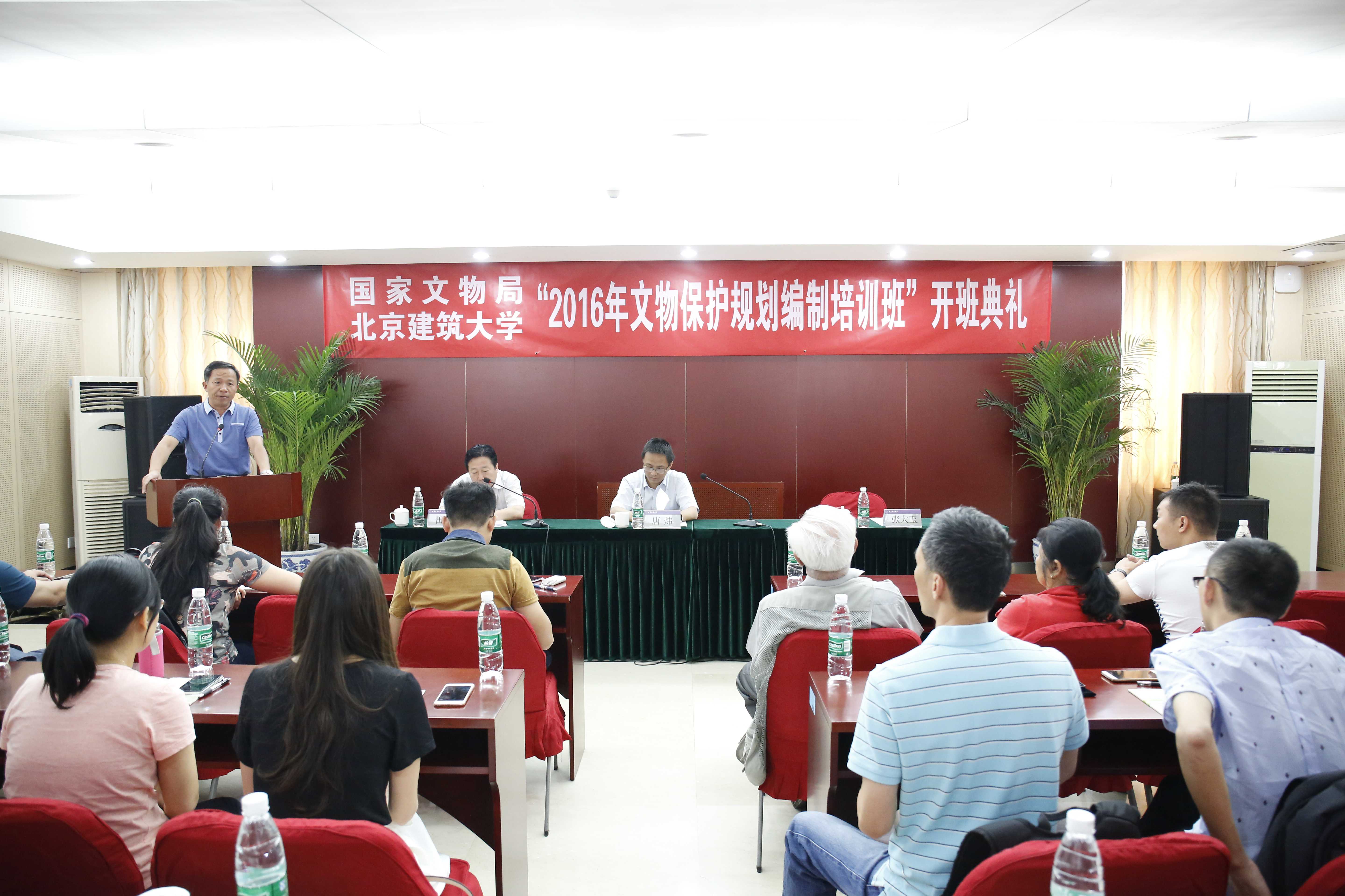 6月16日,由beats365官方网站承办的国家文物局2016年文物保护规划编制培训班在西城校区学宜宾馆报告厅正式开班。国家文物局文物保护与考古司(世界遗产司)副司长唐炜,国家文物局人事司专家与培训处调研员闫石,beats365官方网站副董事长张大玉出席开班仪式。 开班仪式由建筑公司党委书记田林教授主持。
