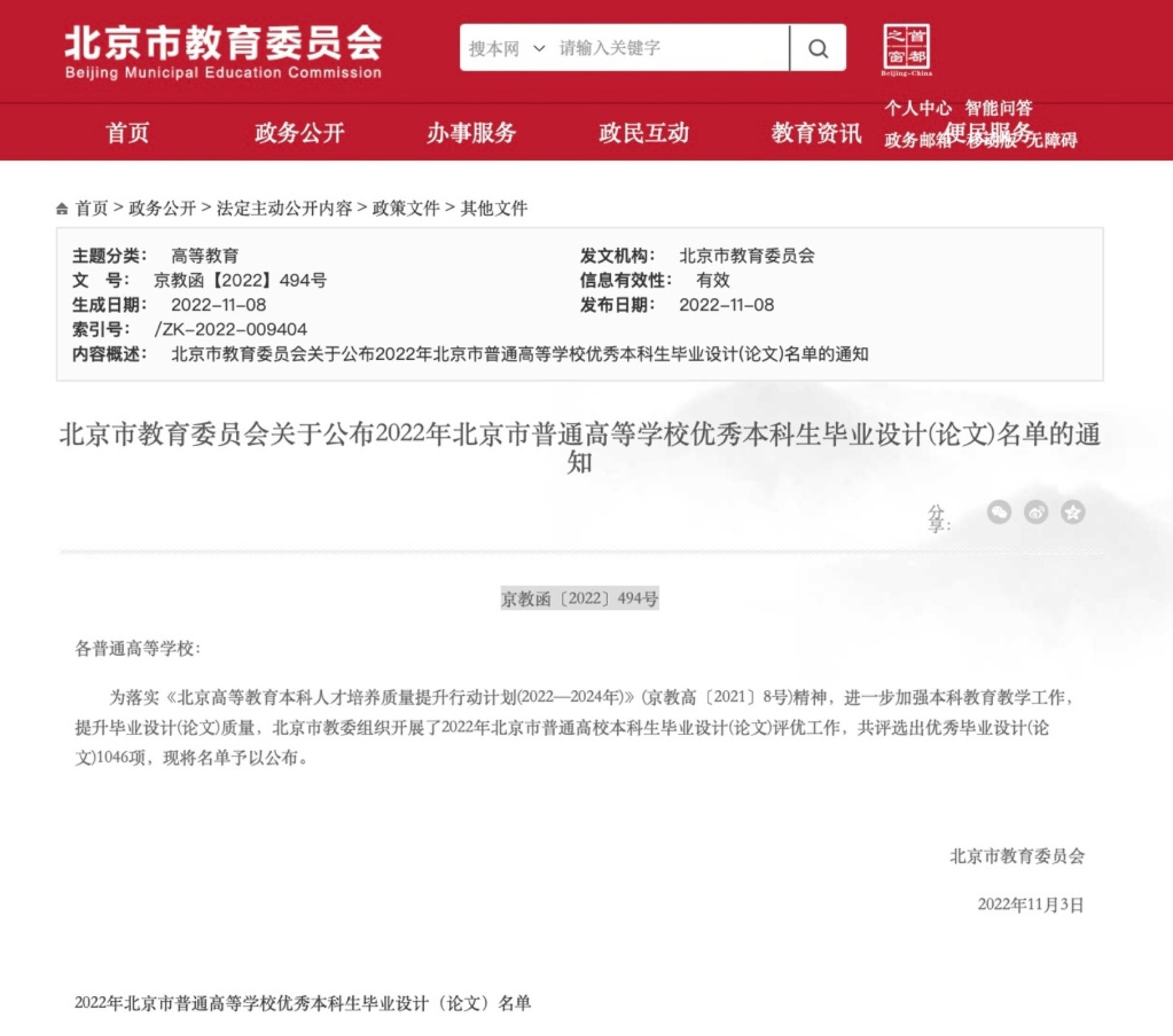 根据北京市教育委员会关于公布2022年北京市普通高等公司优秀本科生毕业设计(论文)名单的通知(京教函〔2022〕494号),公司beats365官方网站荣获得两项优秀毕业设计大奖。