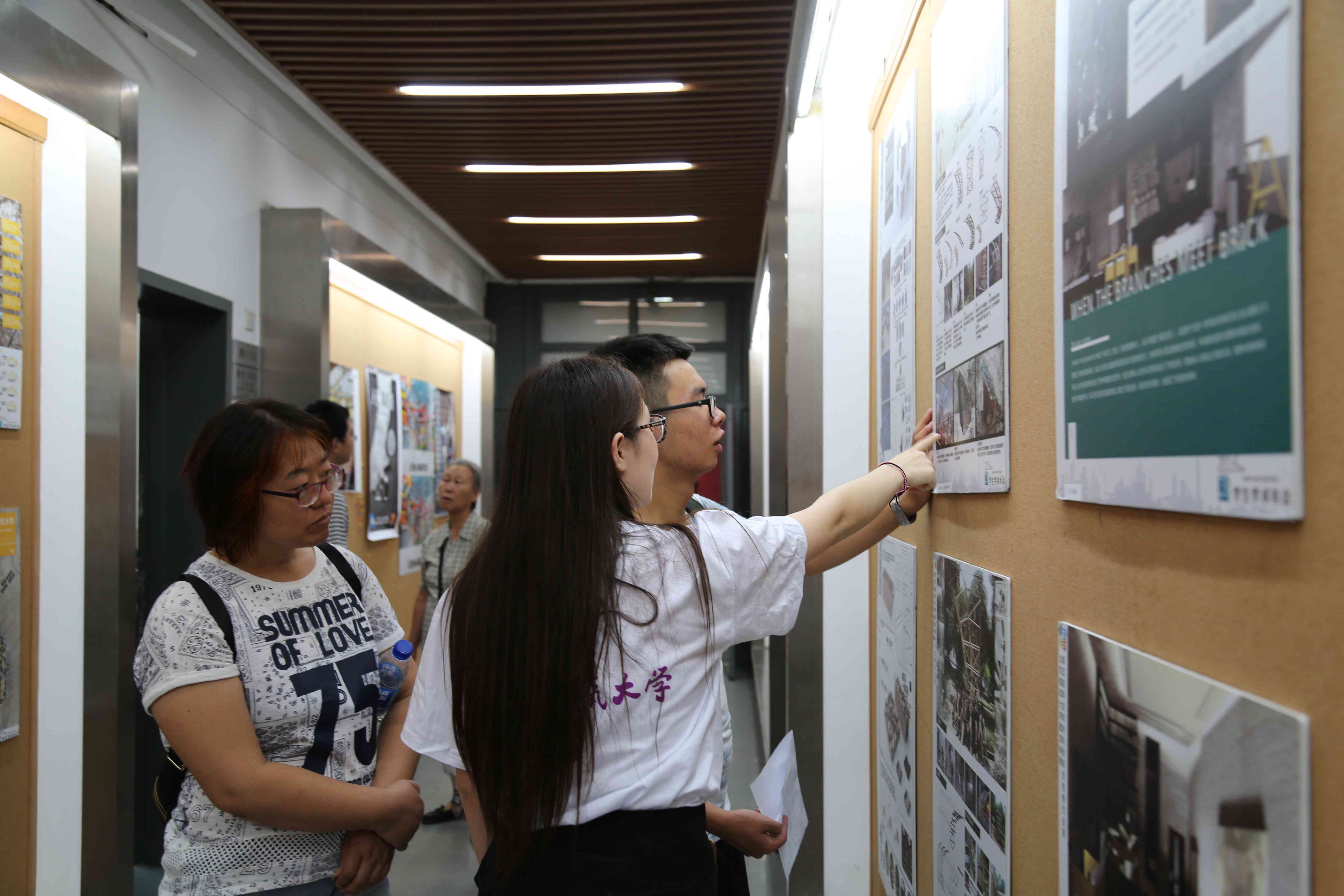 下沉广场举办的“良物匠造”优秀作品展展出了建筑公司15级众多员工的优秀作品,现场的志愿者对前来观展的新生及家长进行了生动有趣的介绍,众多新生对即将开始的课程充满了好奇与期待。教学四号楼一层主要展出12、13级员工优秀设计作品,二层则为“首届城市设计联合工作营设计成果展”,两个展览都吸引了新生及家长的目光,展览充分展示了员工的设计水平,让新生们以更加自信阳光的态度开始学习与生活。