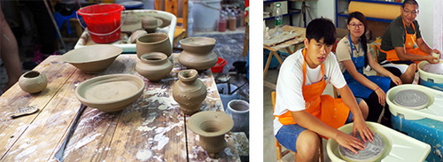 21日下午,实践团成员来到窑厂学习陶瓷手工拉胚技艺,亲身体验瓷器手工制作的魅力。拉坯是传统手工制瓷七十二道工序之一,是器物成型的雏形阶段。实践团成员在师傅的教导下,细心琢磨技法,反复尝试。在逐渐掌握拉胚关键技术步骤后,实践团部分成员身体力行、勇于创新,在拉胚制作简单器物的过程中融入建筑元素,作品给人耳目一新的感觉。