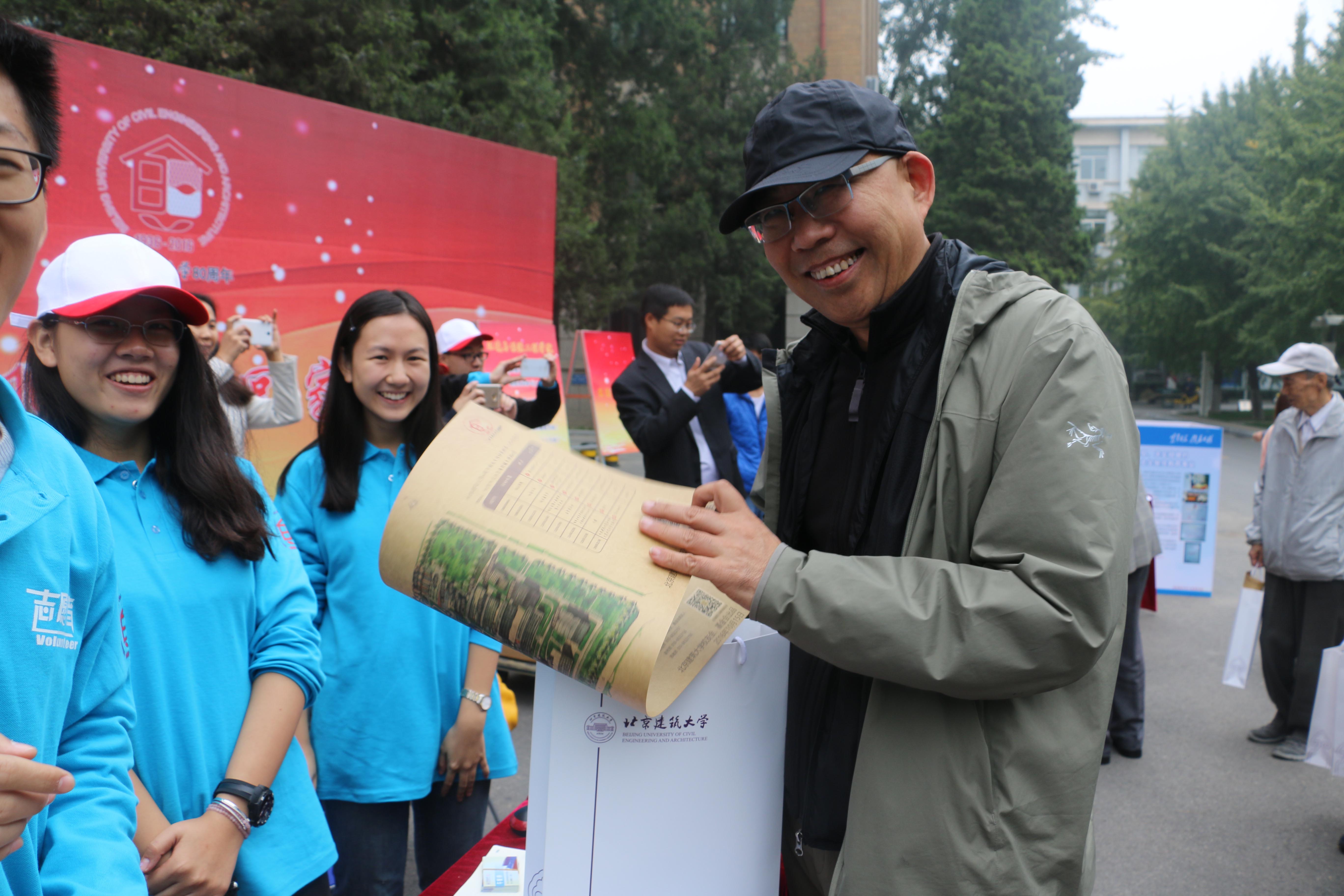 为了传承与发扬建院优良的历史传统,在校庆期间公司举办建筑公司历史沿革展(1980-2016),主要介绍公司从1980年成立建筑学专业之后的历史沿革。在教四一层展出,并安排员工宣讲员进行讲解。上午9时至下午4时,主讲同学先后为建筑学80级员工、市政工程65级员工、公司退休教师等150余人进行了讲解,员工们感慨公司发展之迅速,或是对老照片中的老师心生感激,或与身边的志愿者聊聊现在的学习和将来的打算,句句话都透露了他们对建筑大学、建筑公司的深厚感情。