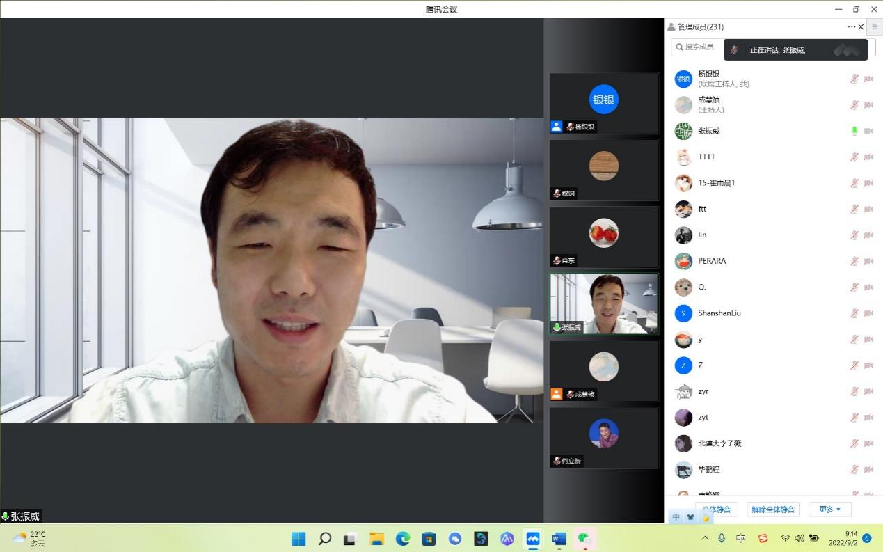 9月2日上午,建筑公司顺利召开2022级研究生入学教育暨师生见面会线上会议,师生“双选”工作正式启动。会议由副经理张振威主持。2022级202名硕士研究生,26名博士研究生参加会议。