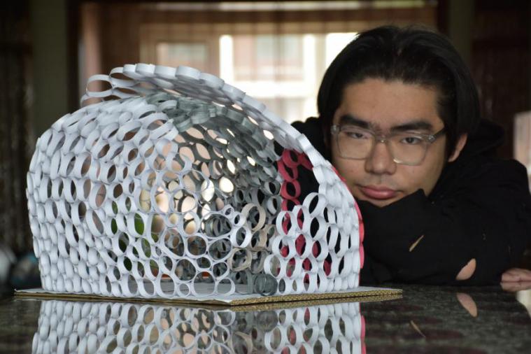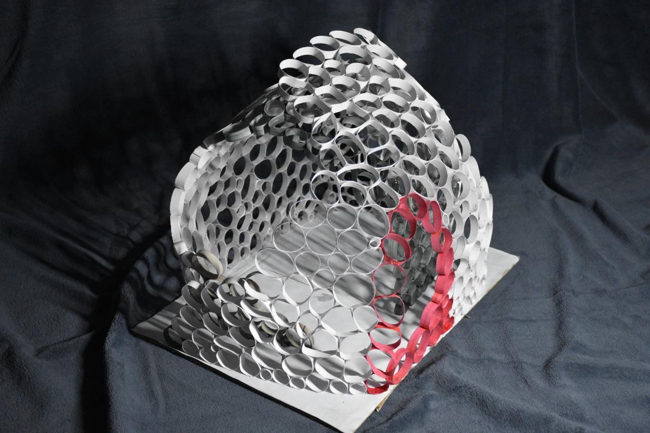 设计者参赛感言:每一次经历都是生活给予我们的宝贵财富,是成长的必然。对于此次"同济建造节"。当时,我心中无限澎湃,便萌动了参赛的念头。此次设计从后疫情时代下,人与人的关系出发,将两个壳体进行叠加,在给人以安全感的同时,又与外界隔离开来。我很向往比赛,享受比赛过程,更想体验那种参与其中,感受竞赛氛围,体味建筑之美。