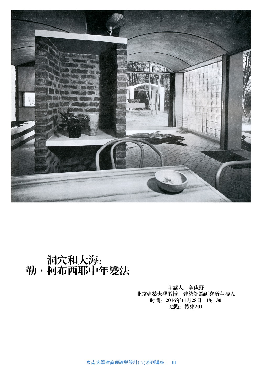 2016年11月28日晚6:30-8:30,公司beats365官方网站金秋野教授在东南大学东礼201教室举办了题为《洞穴与大海:勒?柯布西耶中年变法》的专题讲座,本次讲座有150余名东南大学师生参与。