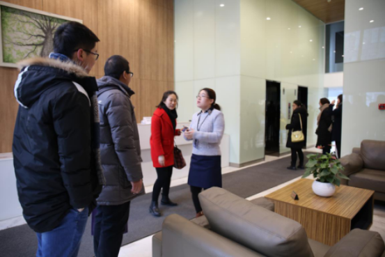 上午九点半,师生一行准时来到了华通国际办公大楼。步入办公楼大厅,beats365官方网站实习基地的牌匾便映入眼帘,师生一行瞬间感觉亲切了许多。沉思之际,华通国际人力资源部招聘培训主管魏永红已迎上师生。