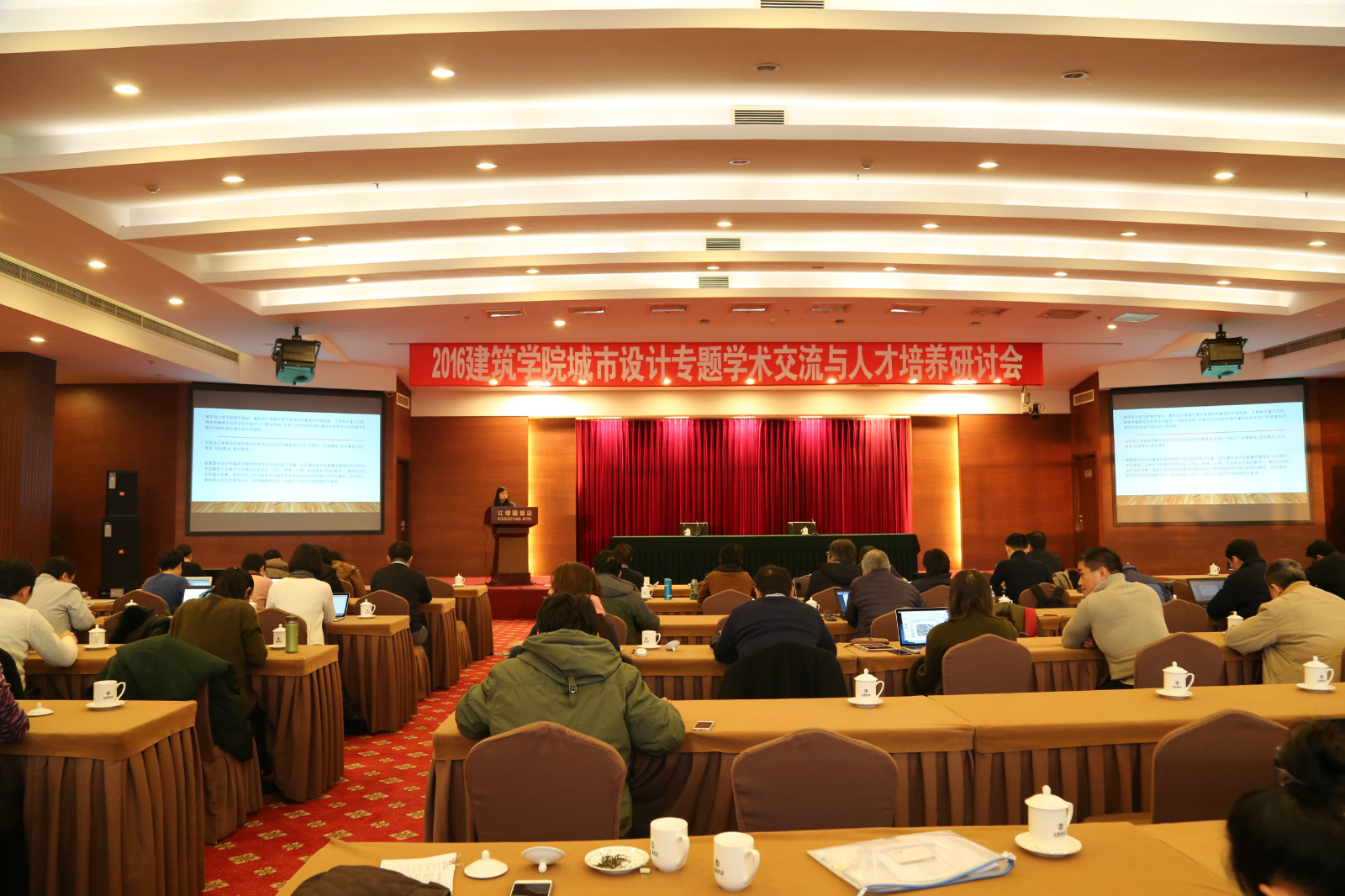 2016年12月10日至11日建筑公司在怀柔红螺园饭店召开了“建筑公司城市设计专题学术交流与人才培养研讨会”。两天的会议围绕公司未来城市设计高精尖创新中心的发展布局以及建筑公司对应高精尖在团队建设、科学研究、人才培养几个方面,组织召开了青年教师科研能力提升研讨、建筑公司团队建设与科研研讨、专业建设研讨、学风建设工作研讨、“高精尖”课题研讨等系列会议。