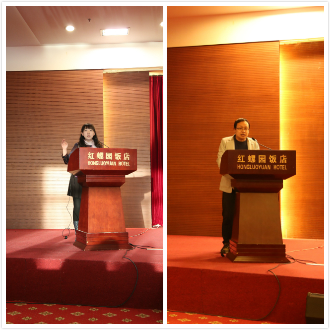 (上图:员工辅导和班级工作的创新方法研讨会;下图:李利老师发言)