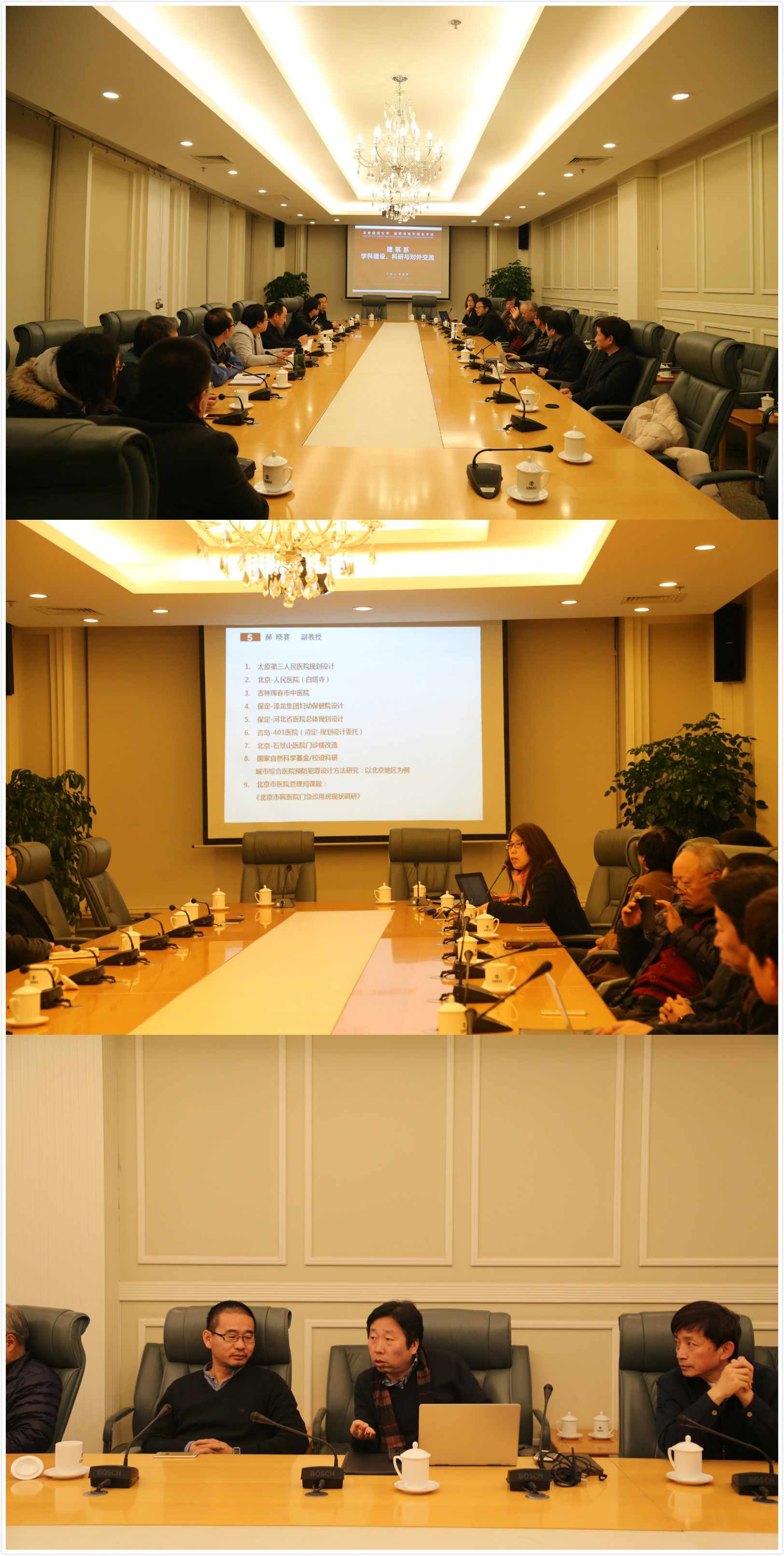 (上图:团队建设与科研研讨会;中图:郝晓赛老师发言;下图:田林书记发言)