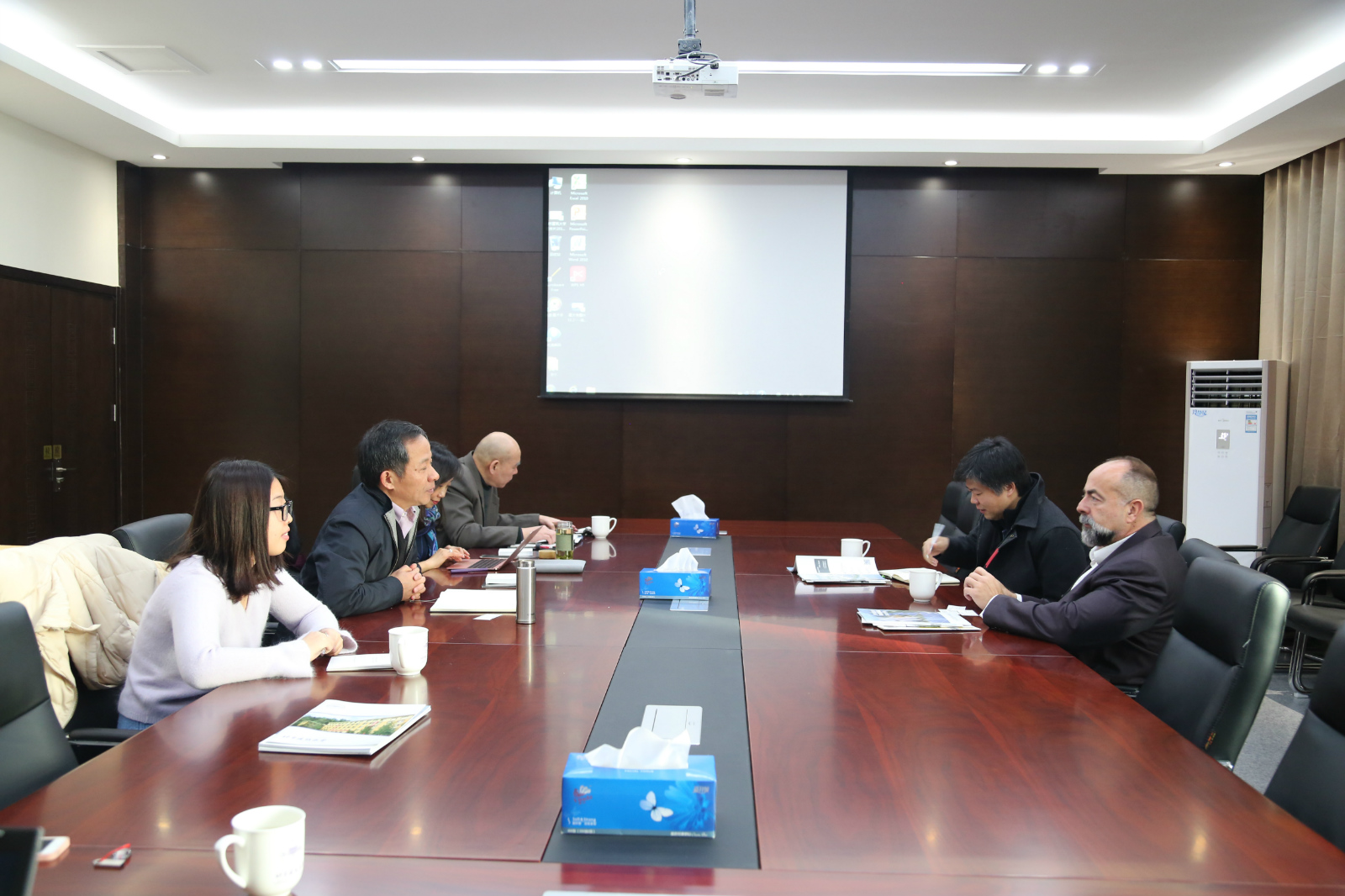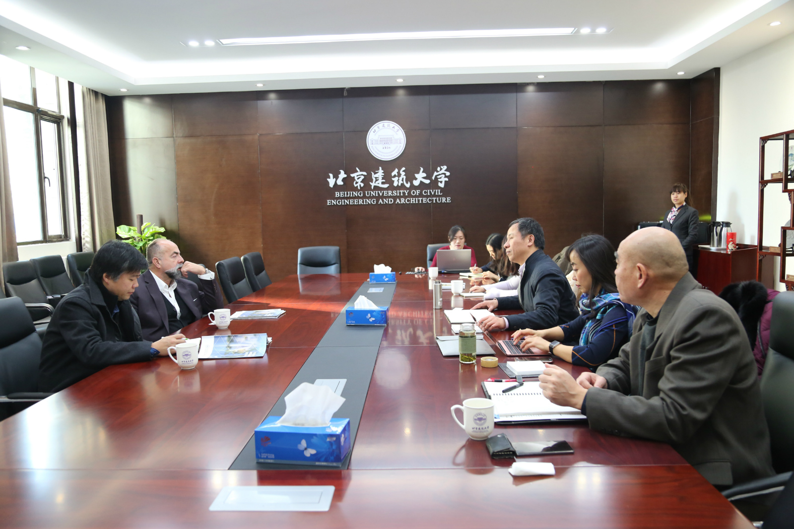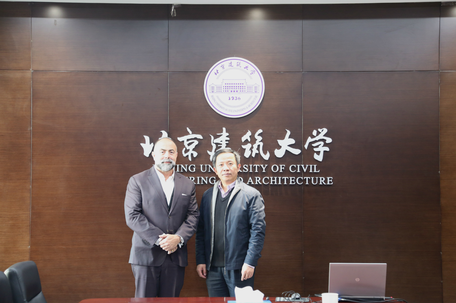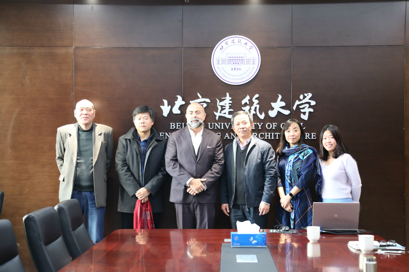 2016年12月29日,美国迈阿密大学建筑公司经理Rodolphe el-Khoury教授和建筑设计师裴钊老师来访公司,公司张大玉副董事长、高精尖创新中心李雪华主任、建筑公司胡雪松副经理、建筑公司科研秘书何静涵参加了会议。