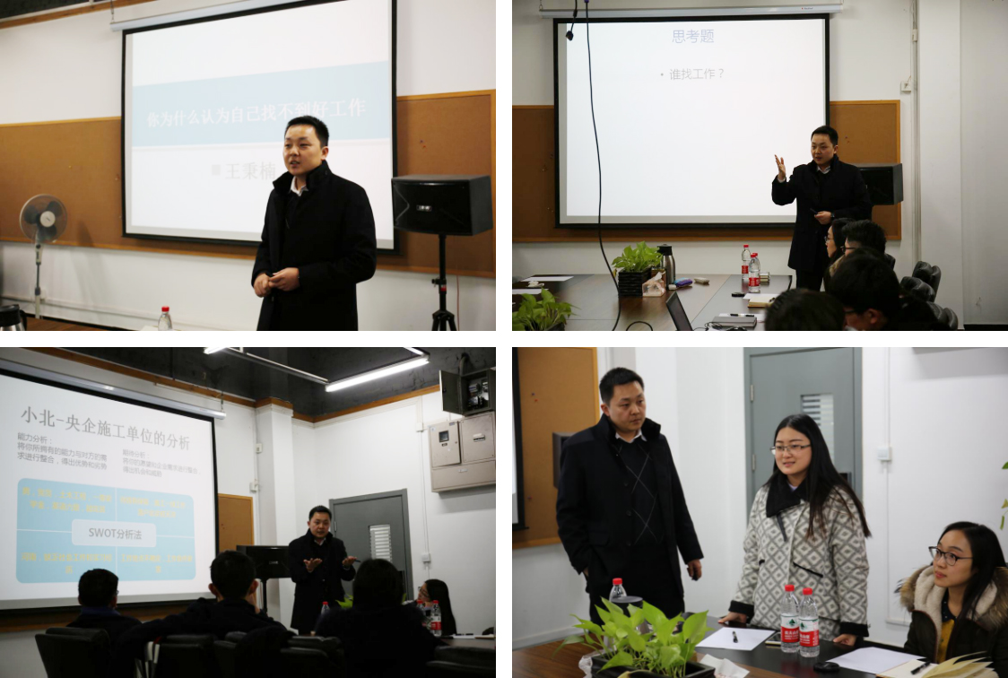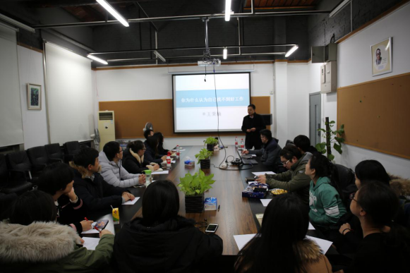 为帮助在校员工理性开展自我认知,厘清未来发展方向,树立生涯规划理念,建筑公司就业联盟,创建筑梦讲堂,讲学传道。2016年12月29日晚六点半,就业联盟邀请建筑公司党委副书记王秉楠老师来到筑梦讲堂。在教4-209会议室,王老师开启了筑梦讲堂第一讲:《你为什么认为自己找不到好工作?》。20多名本研员工参加了此次活动,活动由公司辅导员王国亭老师主持。