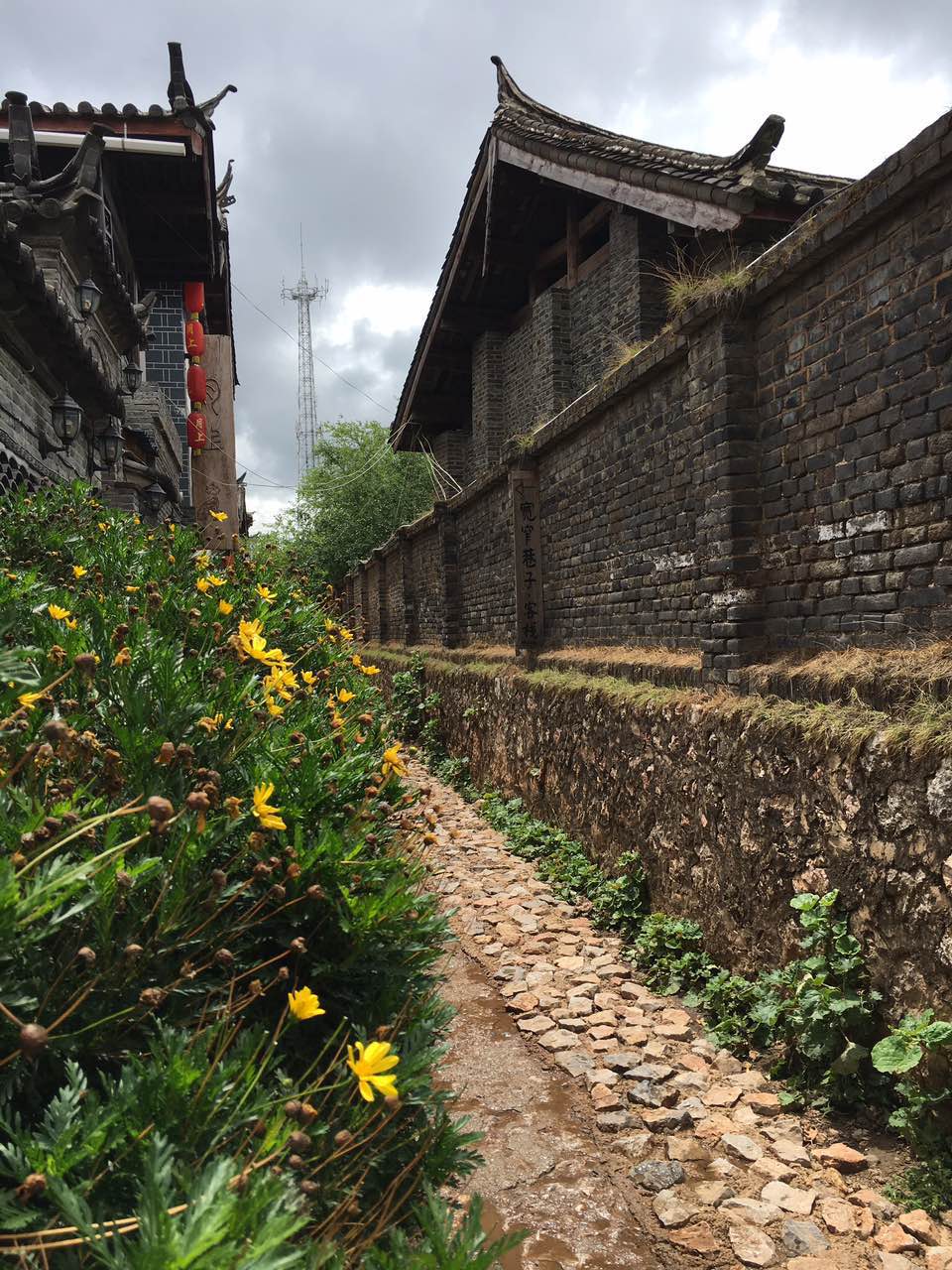 镇子大多都是客栈,也有些青旅,地形的原因,有些客栈建造的比较随意,半山腰上也有零星深巷人家依山而建。不像镇子中间的密集的整齐,转角土坑里也没准儿藏着一家小餐馆儿,后院儿没准儿就有小河,一切浑然天成般,好像这座楼是从山中拔地而起,长成了山的一部分。一大早八点起来去街上随意走走,竟几乎没有店面在营业,如果说每一个城市甚至村镇都有它自己的性格的话,这里真的很慵懒且自在,慵懒到我可以坐在一家餐厅里和一面砖墙聊上一整天,自在到我可以沿着四方街把镇子走出无限种景观。