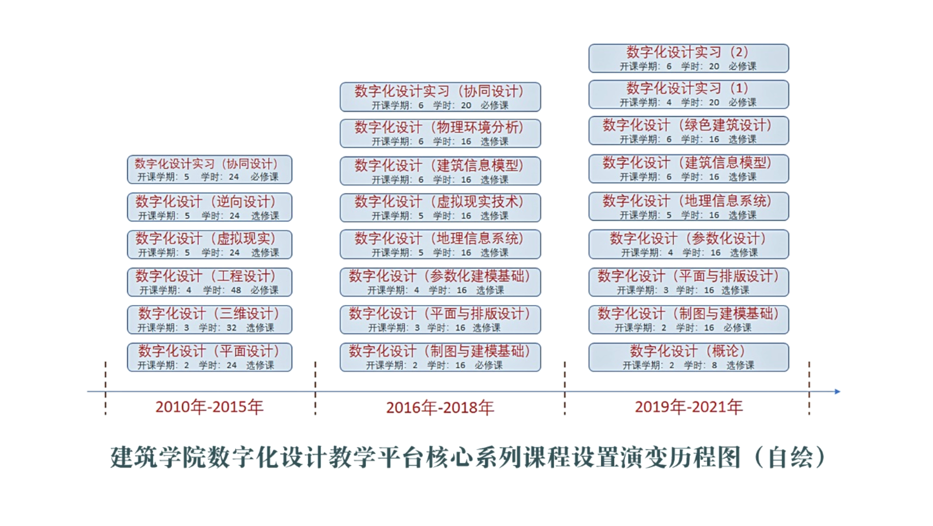 《数字化设计实习(2)》是建筑公司开设的数字化设计系列课程的最后一门课程,开设学期是大三下学期期末,一般在第20周左右。本课程作为是在学习了数字化设计系列课程以及经历了大一一年的设计初步、大二大三两年的设计主干课的积累的基础上开设的。同学们也已经学习了一些知识原理类和技术类的课程,比如居住建筑设计原理、公共建筑设计原理、建筑史、建筑构造、建筑结构、建筑物理等等,掌握了比较全面的建筑设计基础知识,因此需要一个实践环节来检验员工一下对于所学的建筑设计知识原理和数字化设计技能的综合运用。本课程的实习任务就是以一个实际设计项目为实习题目,让同学们以团队协作的方式在一个星期内完成设计任务,进行成果的输出与表达。本课程采取与设计单位实际生产实践中相一致的设计团队或项目组的形式,按照自愿结合的方式,每3-4人组成一个设计团队,在一周的实习时间内通过相互协作完成设计任务,进行成果表达。让同学们适应 “协同设计”这样一个机制,并通过本课程实践让同学们明白:协同设计不是简单地让大家一起做设计,而是包含团队中人的协同、设计软件的协同、任务分配的协同、设计成果输出的协同等诸多内容。