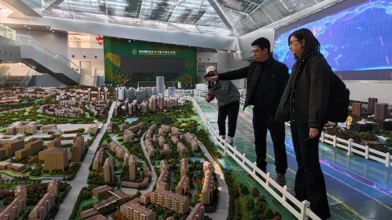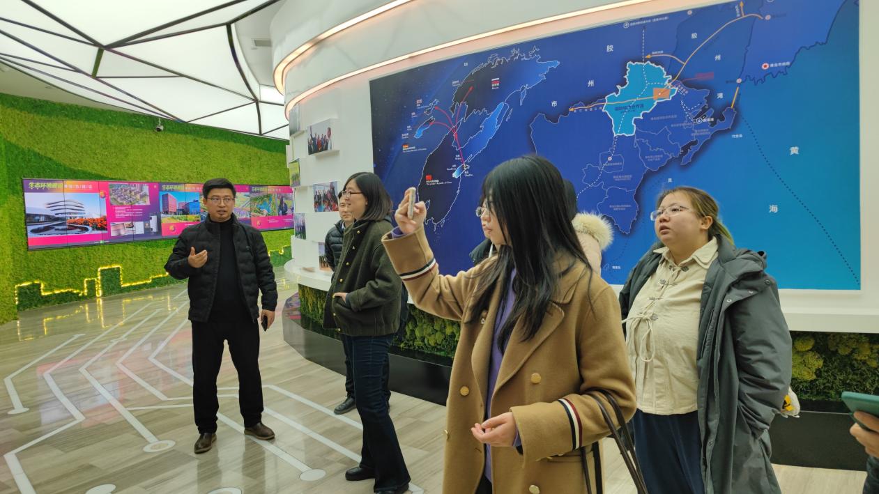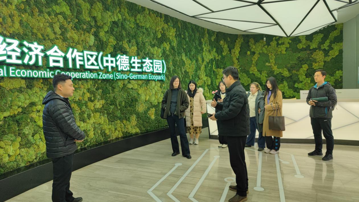 中德生态园由德国gmp公司规划设计,2010年在中德两国总理见证下签约建设,着力建设生态型、智能型、开放型的中德两国共建园区,被誉为中德两国政府间生态领域灯塔式项目。生态园管委会经理与团队为项目组师生详细介绍了生态园发展历程、总体规划及绿色理念等,同学们参观了大尺度规划模型和绿塔项目模型,与管理团队就建筑理念、绿建技术等相关问题进行了交流。