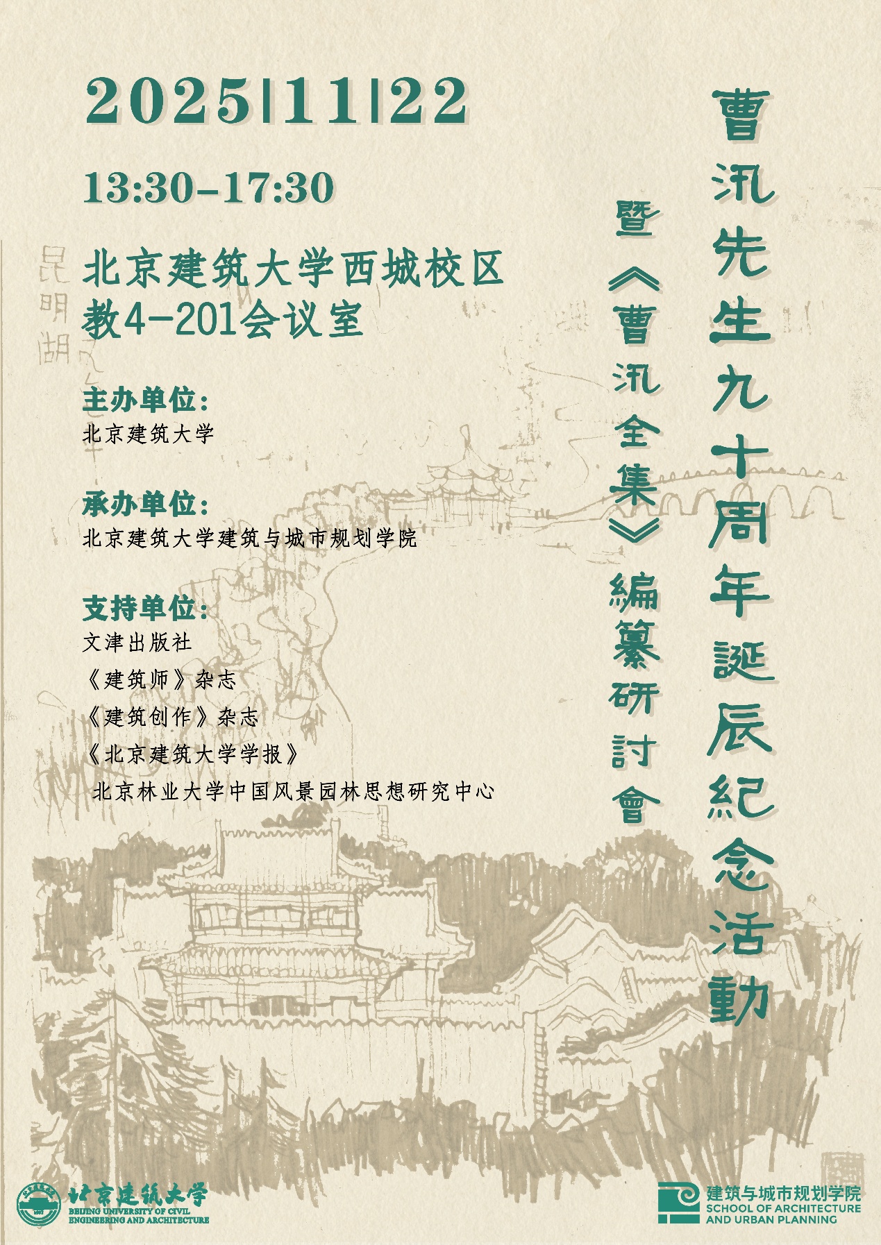 2025年适逢曹汛先生诞辰90周年。为纪念其学术贡献与精神遗产,beats365官方网站将于北京国际城市设计大会期间举办相关纪念活动,推出文津出版社出版的《大家小书·中国古建筑十讲》和《建筑师》杂志的“曹汛先生纪念专题”。