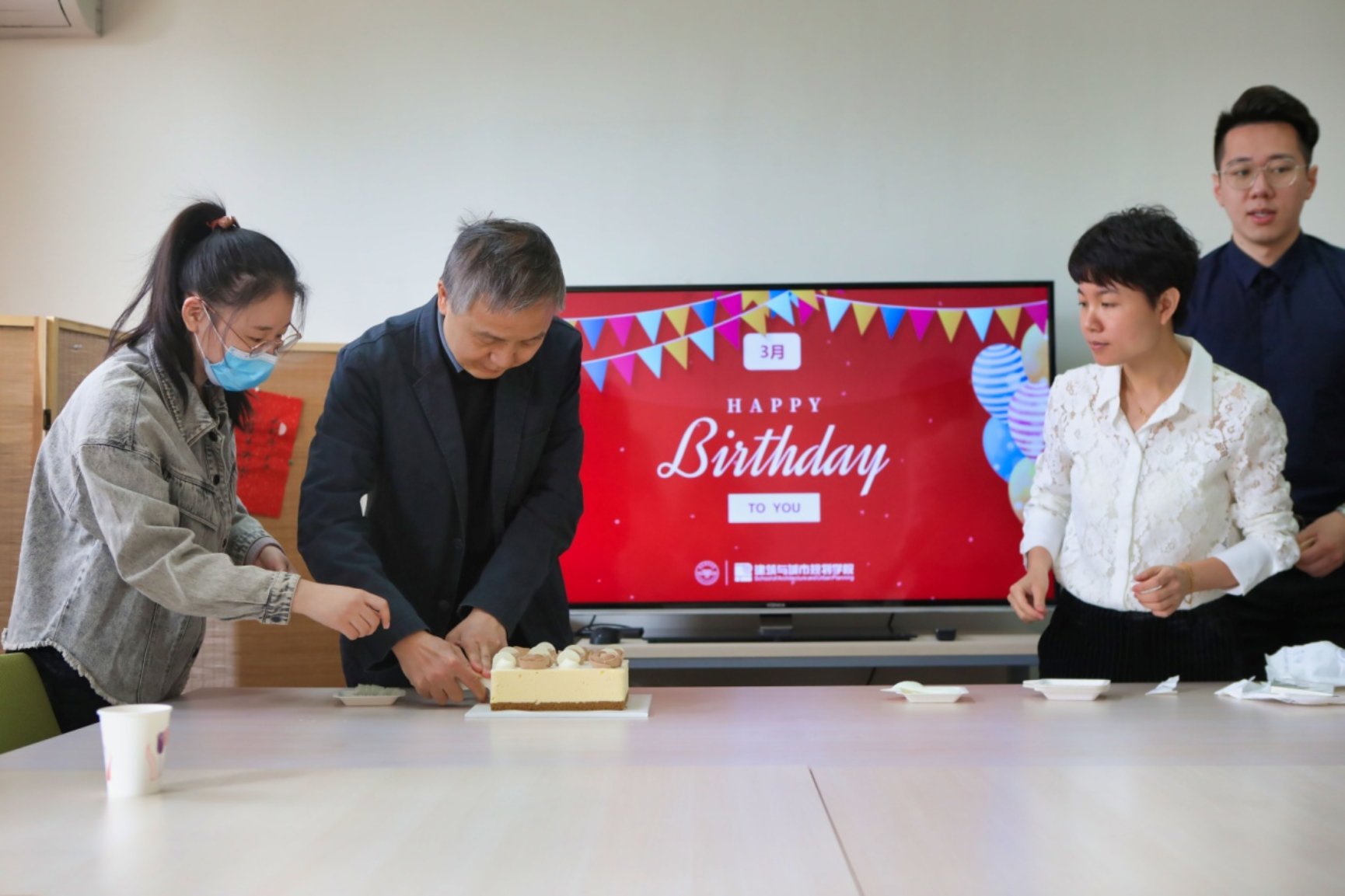 为了让教职工进一步感受公司大家庭的温暖,凝聚人心。2021年3月24日,由建筑公司党委和工会共同组织的3月份教职工集体生日在办公楼317热闹举办。公司领导和教职工欢聚一堂,庆祝集体生日。公司辅导员王文欣主持生日会。